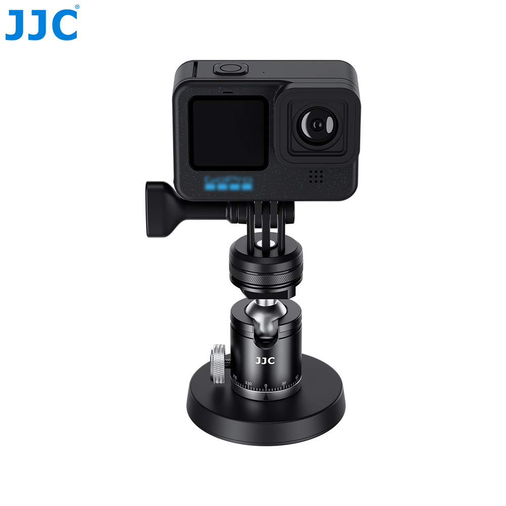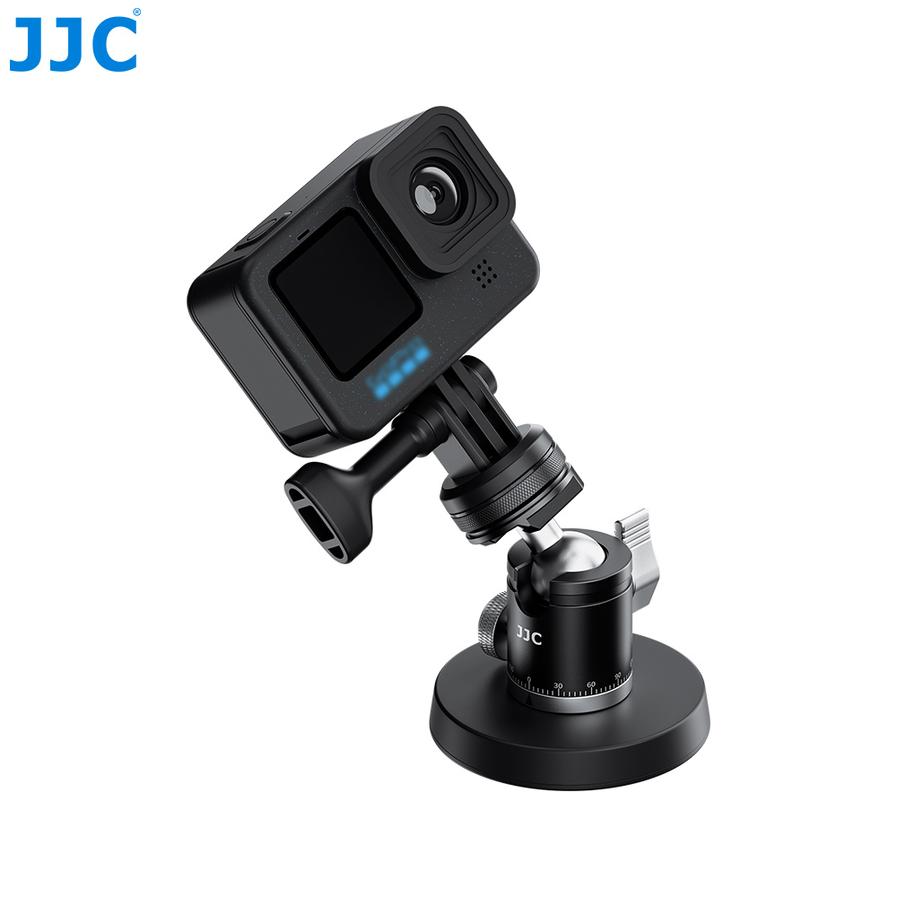 JJC MMB-1磁吸底座套装专为让小型摄像机、运动相机或监视器等磁吸至铁质表面所设计,如车,船,冰箱等。套装内含一个磁吸底座,一个球型云台以及一个运动相机固定底座。