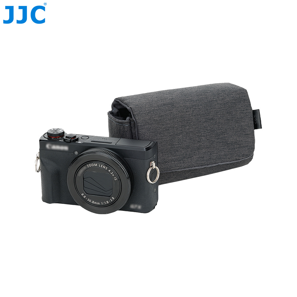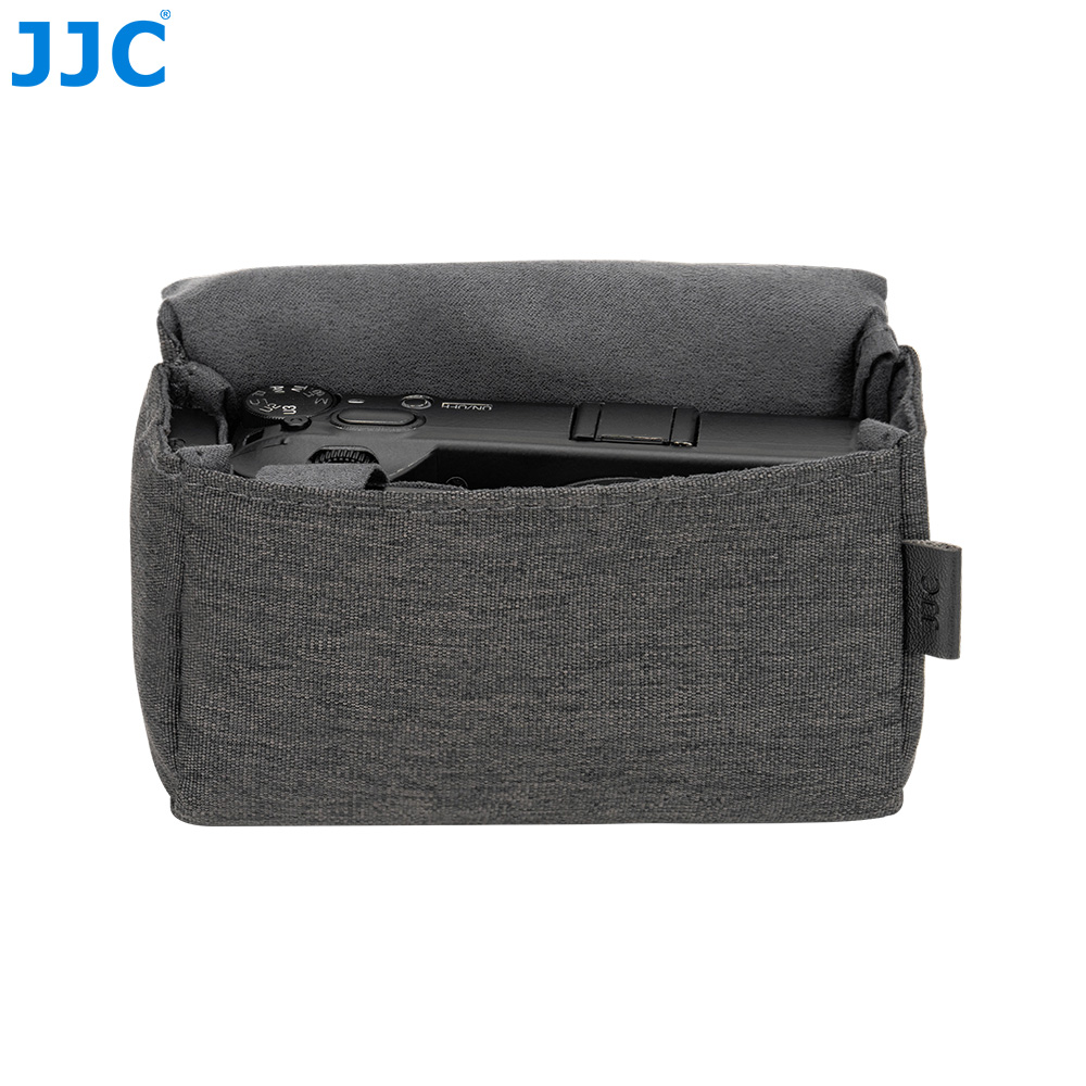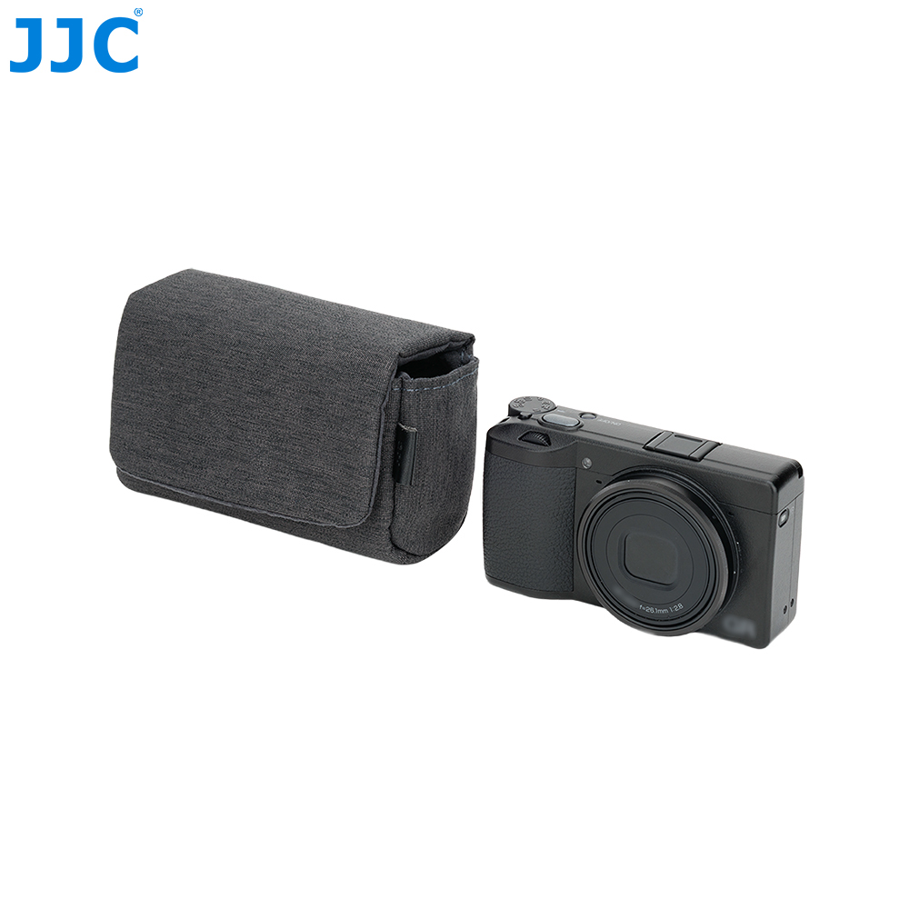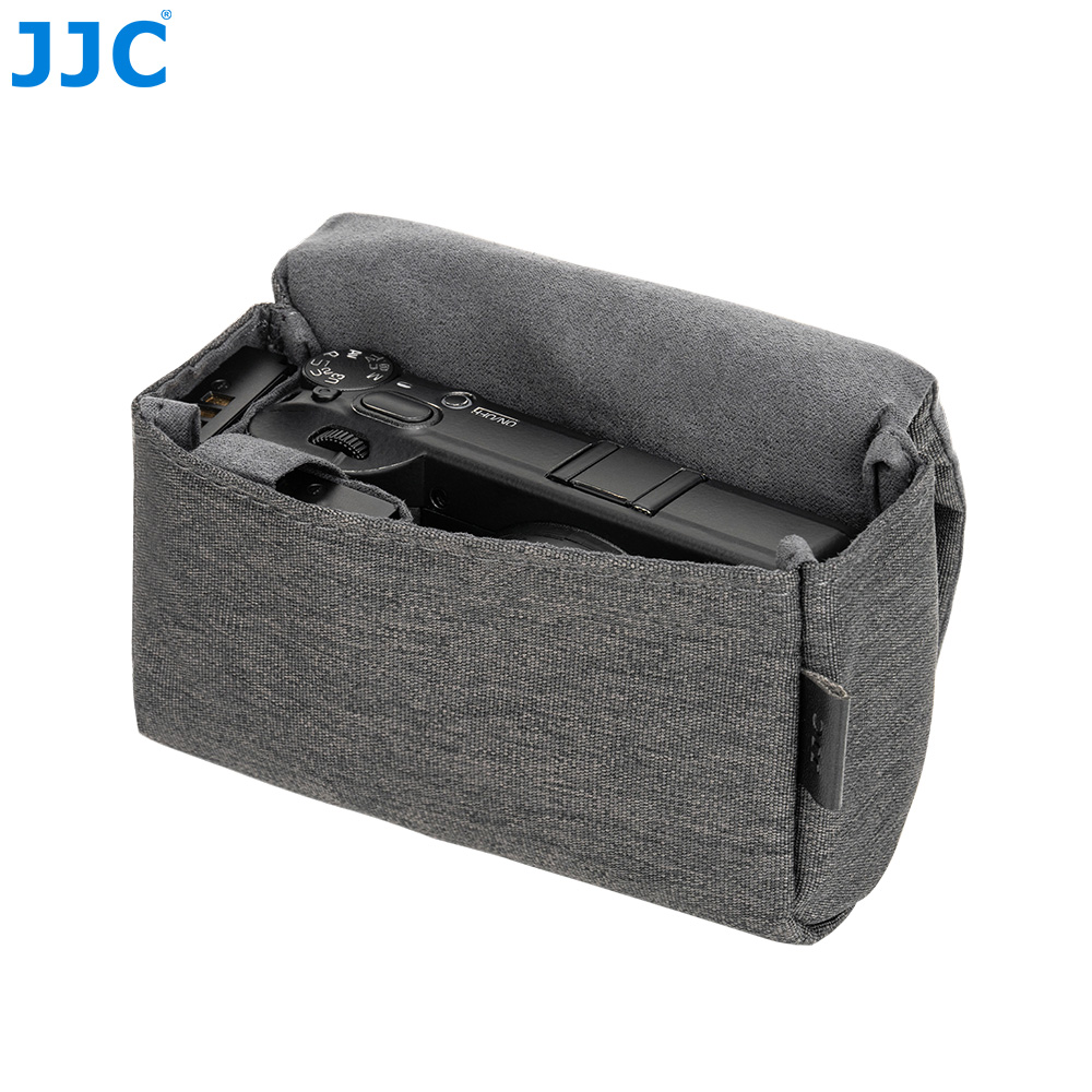 JJC CB-S DGRAY相机包适用于理光GR3,GR IV,佳能G7XM3,PowerShot SX740 HS,松下DC-ZS99(TZ99)和索尼RX100系列相机,可以储存并保护您的相机免于灰尘、颠簸、刮蹭以及轻微的撞击。为了便于使用,相机包采用磁吸设计,这种简易的设计,使您能快速的取出相机。CB-S DGRAY相机包表面采用涤纶牛津布,高密度编织抗撕裂,适合日常频繁使用;内衬为仿皮绒,可有效防止刮擦,保护相机机身和镜头。相机包内设两个收纳袋,可用于存放电池;背面配有隐藏式口袋,方便收纳存储卡,读卡器和清洁布等。此相机包兼容相机肩带,不影响肩带的使用。