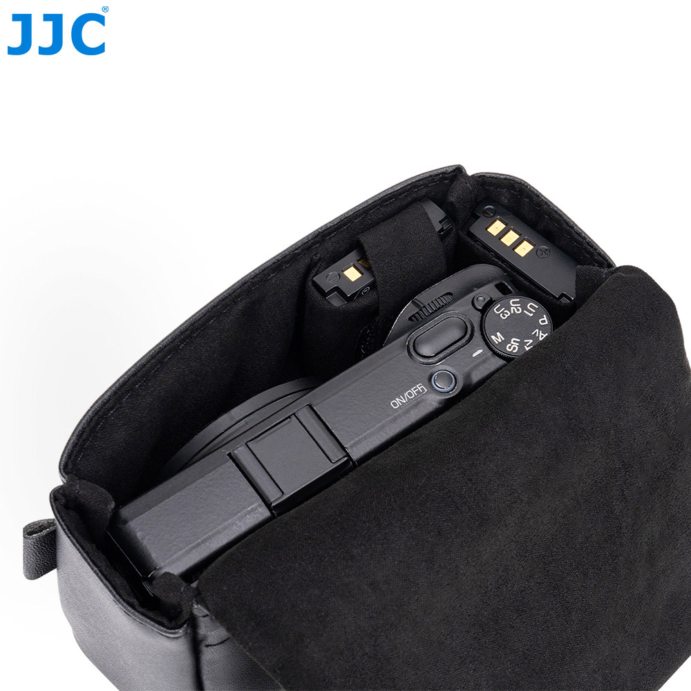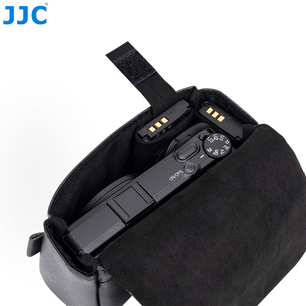 JJC CL-S BLACK相机包适用于理光GR3,GR IV,松下DC-ZS99(TZ99),佳能G7XM3,PowerShot SX740 HS和索尼 RX100系列相机,可以储存并保护您的相机免于灰尘,颠簸、刮蹭以及轻微的撞击。为了便于使用,相机包采用磁吸设计,这种简易的设计,使您能快速的取出相机。CL-S BLACK相机包表面采用超仟皮革面料,质地柔软细腻,坚韧耐磨,不仅提升整体质感,也更适合日常频繁使用;内衬为仿皮绒,可有效防止刮擦,保护相机机身和镜头。相机包内设两个收纳袋,可用于存放电池;背面配有隐藏式口袋,方便收纳存储卡,读卡器和清洁布等。此相机包兼容相机肩带,不影响肩带的使用。