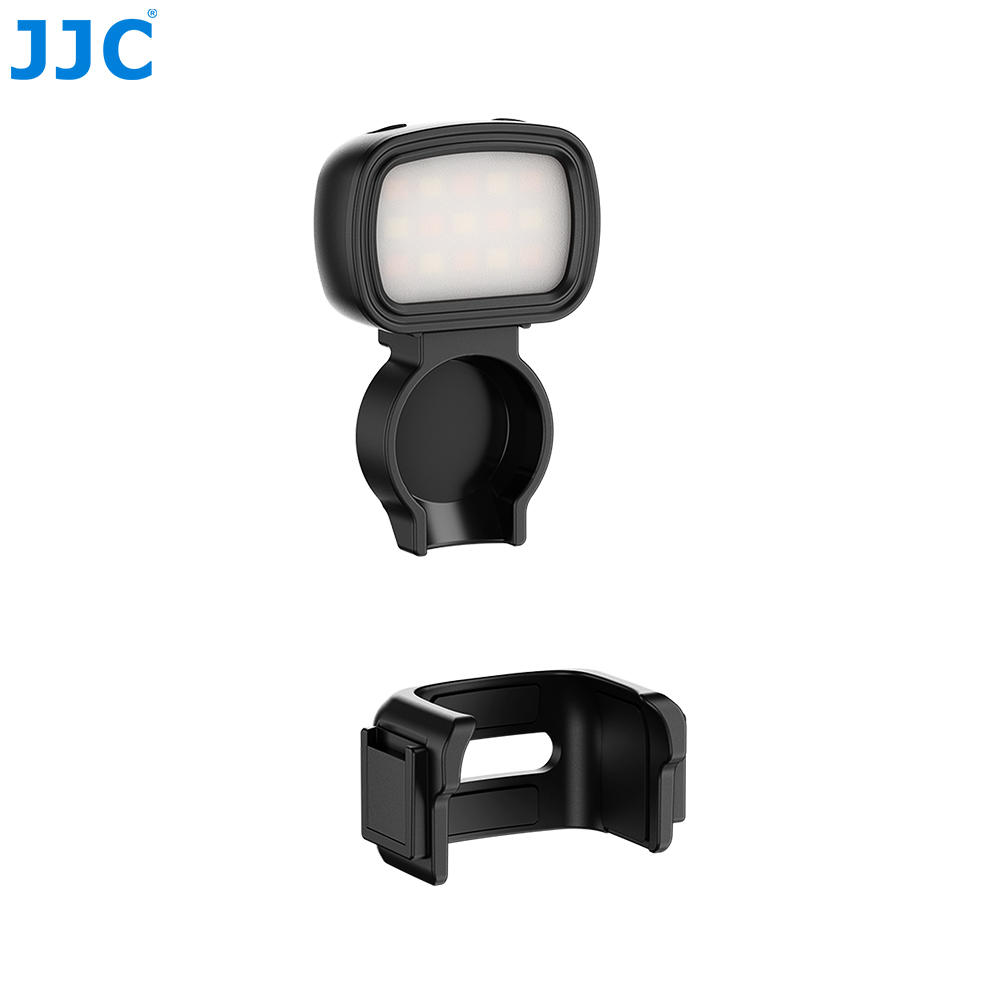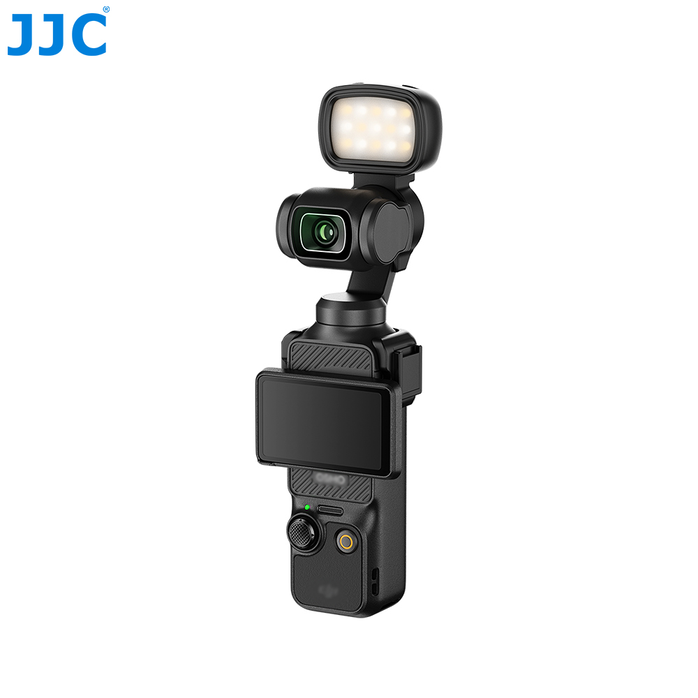 JJC LED-OP3M2迷你LED摄影灯专为大疆OSMO Pocket 3设计。磁吸设计,一秒吸附,随时开拍。包装内配备两个固定夹,精准贴合相机轮廓,可分别安装在Pocket 3云台和机身上,提供三处灵活的磁吸位,满足多角度补光需求。固定夹采用轻量化ABS材质,既不会干扰云台转动,也不影响屏幕旋转。