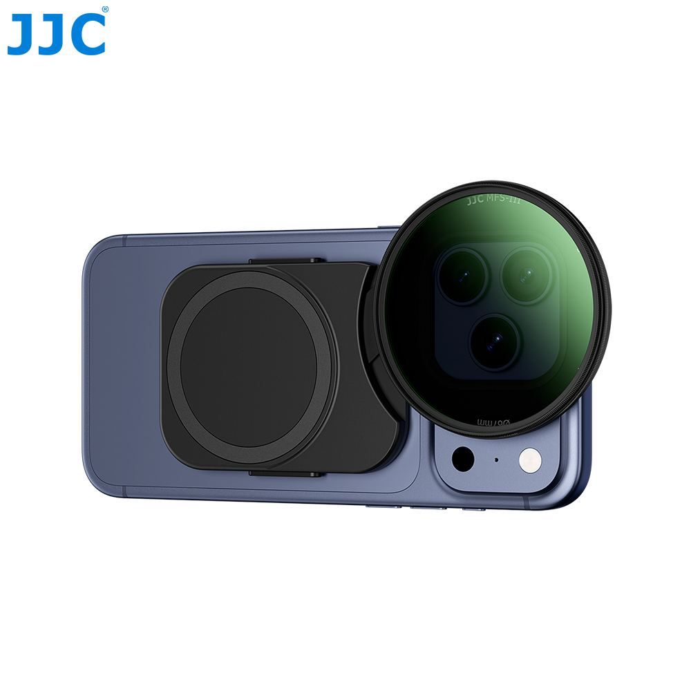 JJC MFS-III磁吸手机滤镜转接系统专为iPhone 17系列,iPhon16系列等设计,提供67mm口径滤镜接口,让手机摄影也能享受相机滤镜的专业效果。支持拉伸调节设计,可适配不同尺寸的 iPhone手机。与手机接触部分硅胶贴面,避免刮擦手机。金属滤镜接口采用硅胶卡槽二次保护,不伤害手机镜头,同时增加防止炫光和漏光的功能。产品采用磁吸设计,可快速牢固吸附在手机背面。背面的磁吸圈可与磁吸支架、磁吸自拍杆、JJC MS-M1磁吸自拍镜等配合使用。侧面分别配备拓展冷靴母座与 1/4"-20 螺口:冷靴母座可连接 LED 灯或麦克风,满足多样化拍摄需求;1/4"-20 螺口可将手机安装至三脚架、云台等设备,适用于 Vlog 拍摄、直播及手机电影制作,显著提升拍摄的扩展性与便利性。冷靴母座和1/4"-20螺口可通过附赠的螺丝刀自由拆装,满足不同的使用需求。