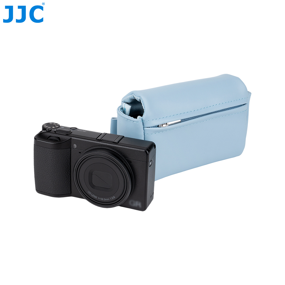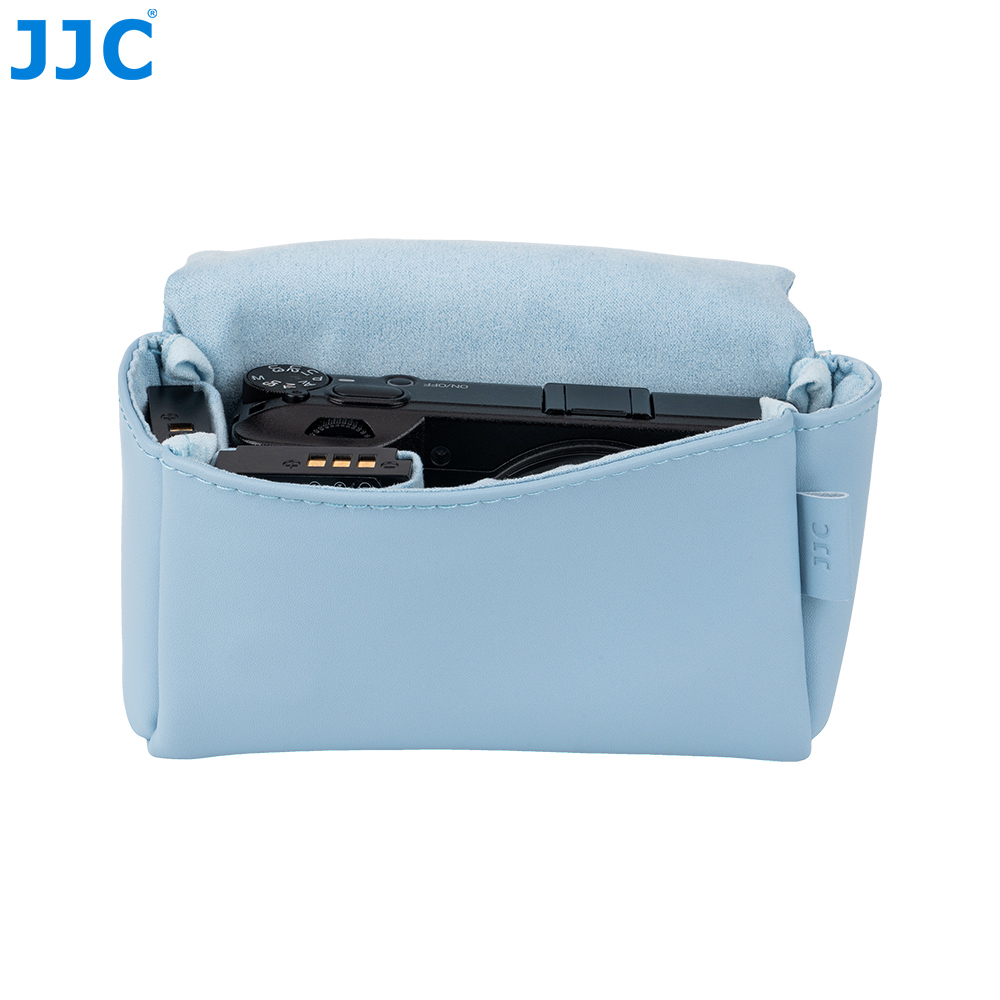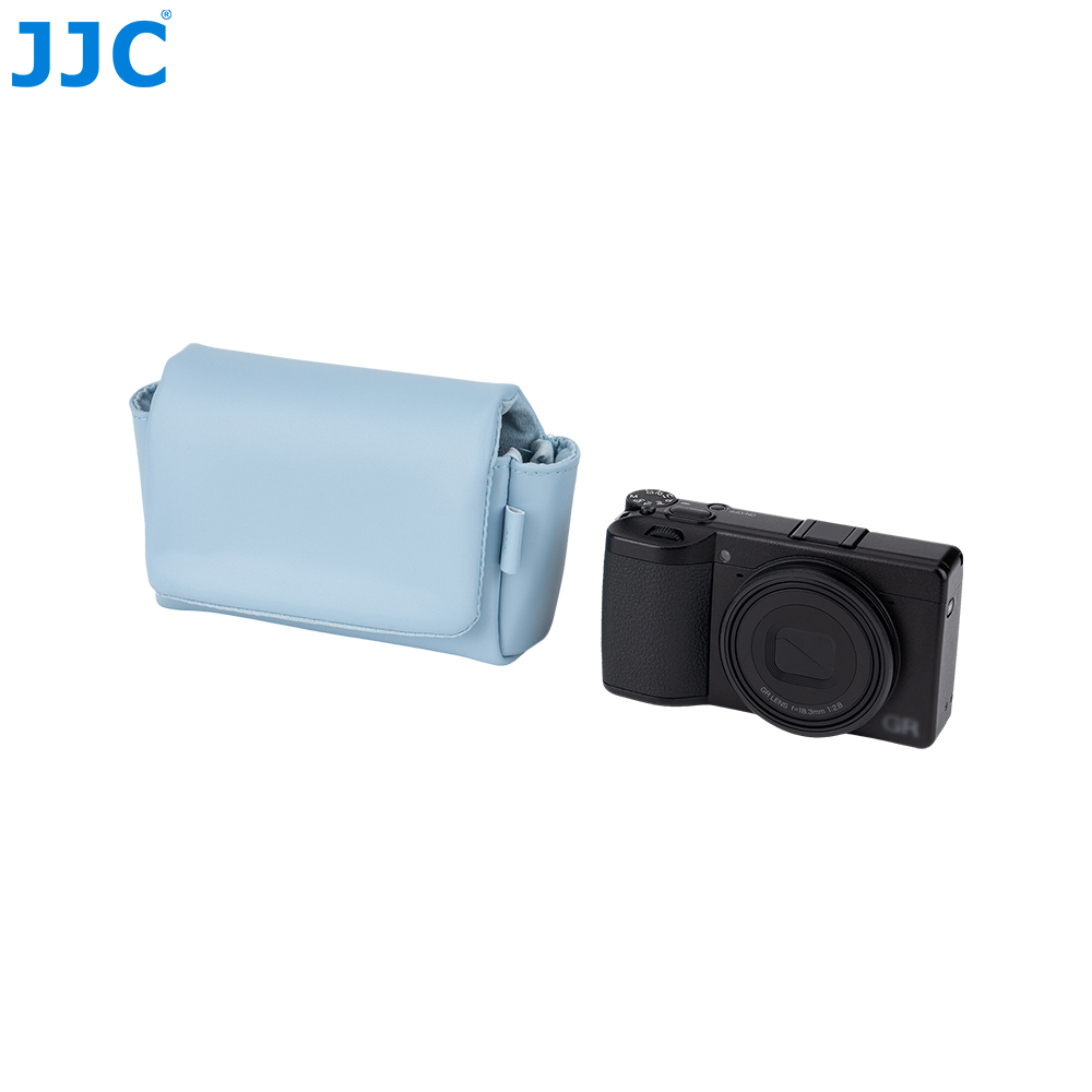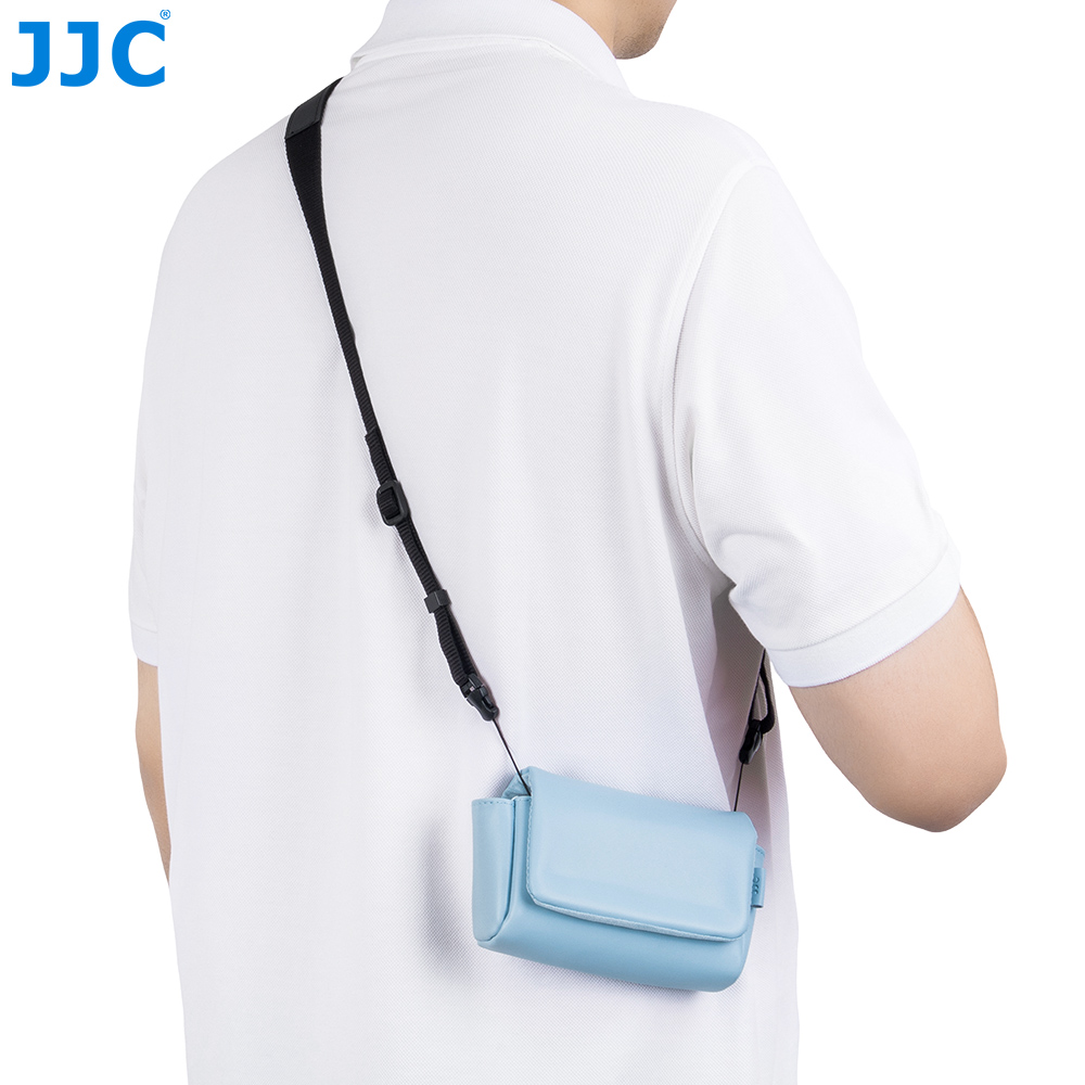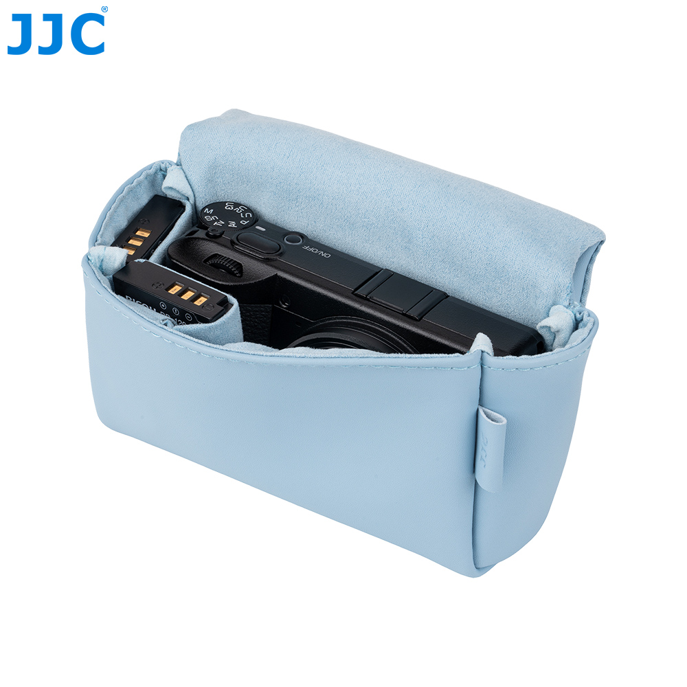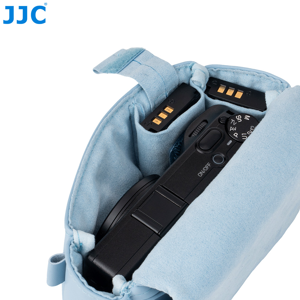 JJC CL-S 系列相机包专为理光GR3,GR IV,GR IV HDF和GR IV Monochrome,松下DC-ZS99(TZ99),佳能G7XM3,PowerShot SX740 HS和索尼 RX100系列相机设计,能有效保护您的相机免受灰尘、颠簸、刮蹭及轻微撞击。相机包采用磁吸开合设计,确保您能快速、便捷地取放相机。表面采用高品质超纤皮革面料,质地柔软细腻且坚韧耐磨,在提升整体质感的同时更经得起日常频繁使用;内衬为仿皮绒材质,有效防止刮擦,呵护相机机身与镜头。包内设有两处专用收纳袋可存放电池;背面配有隐藏式口袋,方便收纳存储卡、读卡器和清洁布等。此外,该相机包兼容相机肩带,安装后不影响正常背负。本系列提供黑色和蓝色两款配色,随心选择,尽显个性。