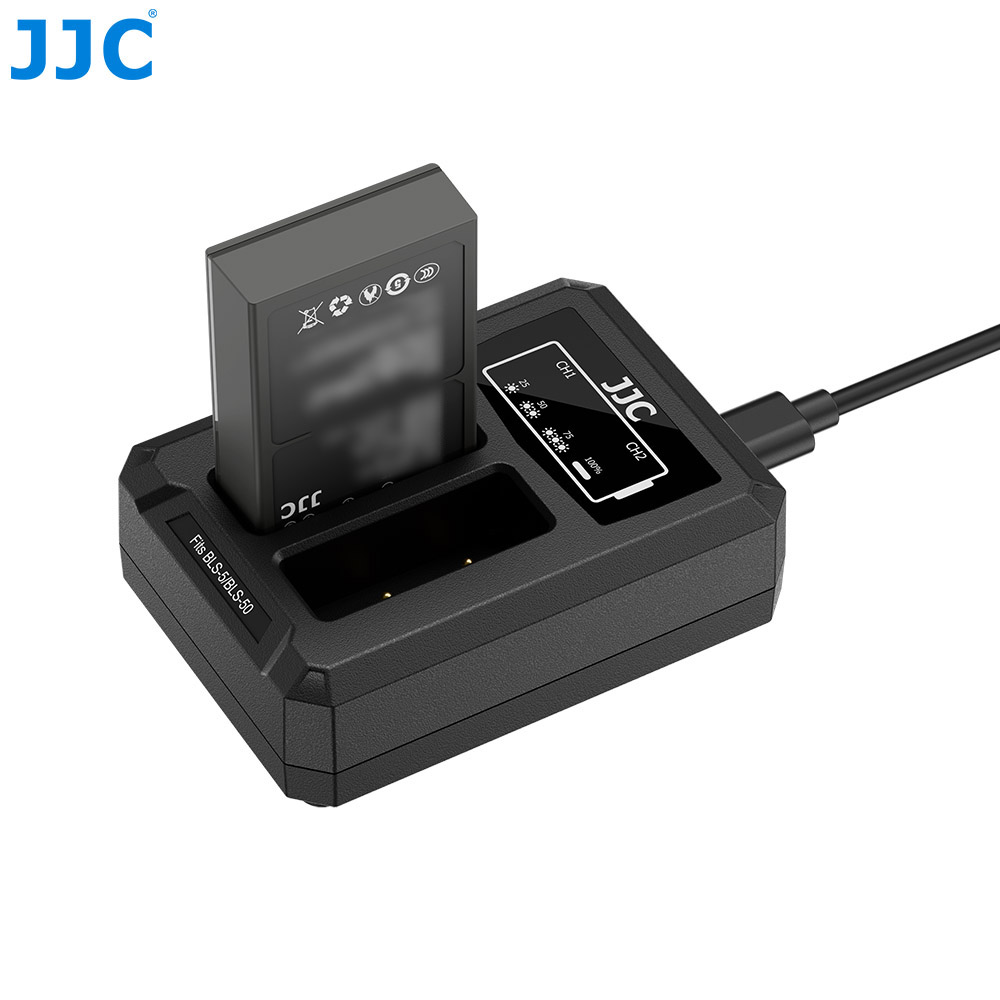 JJC DCH TC系列USB双电池充电器可同时为两个电池充电,配备通用型 Type-C (USB-C)接口,兼容性强,支持多种电源设备。您可以使用AC插头,笔记本电脑,充电宝或是汽车充电器进行充电,随时随地补充电量。充电器设有两个指示灯分别显示对应插槽电池的充电状态,充电闪烁,充电完成后长亮。过充保护设计,可在电池充满后自动停止充电,以免损坏电池。此外,附赠一根 Type-C-USB A 充电线,便于为充电器供电。