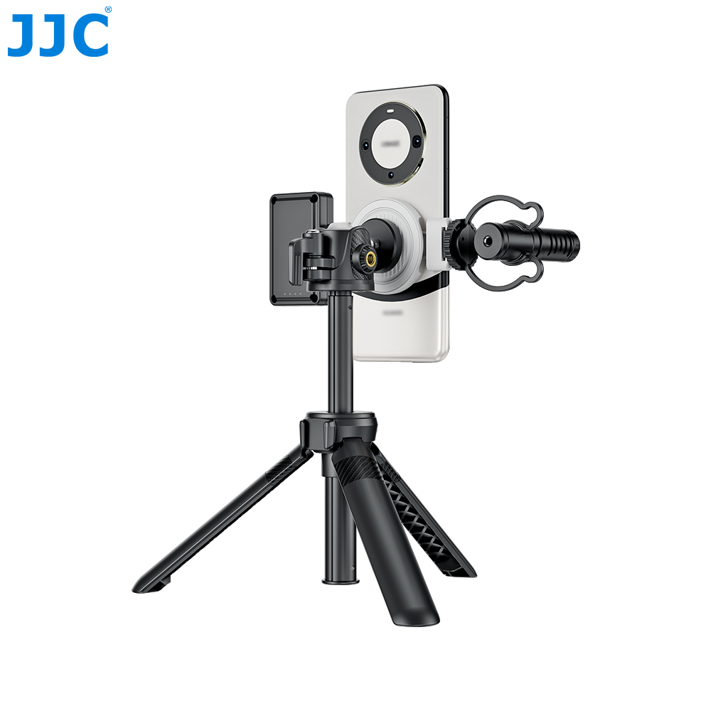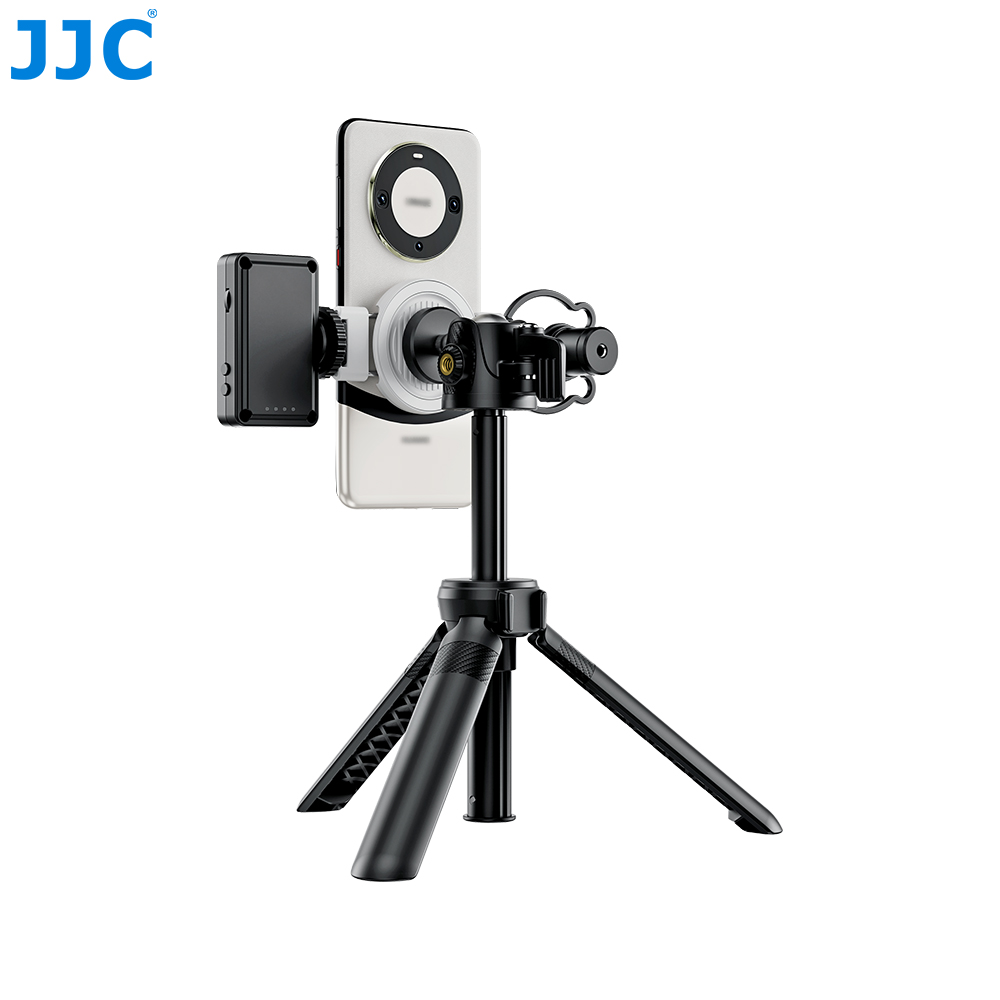此外,手机夹还具有双冷靴接口,可安装麦克风和LED灯等附件,为不同的创意需求提供更多可能性。手机夹背面的1/4英寸-20螺纹孔可轻松安装在三脚架上,为摄影和摄像提供新的视角。