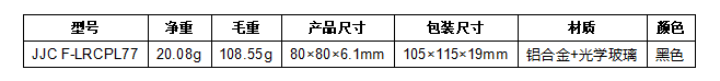 JJC F-LRCPL 系列低反射 CPL 滤镜是一款兼具超低反射率与高偏光度的圆偏振镜,适用于风光、人文、橱窗等拍摄场景。采用高清光学玻璃制造,镜片厚度仅 1.5mm,镜框厚度 4mm,轻薄不易产生暗角。滤镜选用日本原装日东真彩偏光膜,偏光度高达 ≥99.9%,可有效消除水面、玻璃、树叶、油漆等非金属表面的杂乱反射,显著提升画面纯净度与细节清晰度。具备良好的色彩还原能力,能够增强图像对比与饱和度,使蓝天更深邃、云层更立体、绿叶更鲜明,特别适合用于风光摄影。镜片双面共镀膜 44 层,可进一步降低反射干扰。在可见光范围内反射率低至0.1%,即使在多角度复杂光源下也能呈现通透清晰的画面。此外,滤镜还具备 防水、防油、防刮、防静电功能,耐用易维护。产品附赠防潮滤镜盒和超细纤维清洁布,方便收纳,携带和清洁。