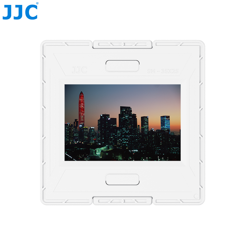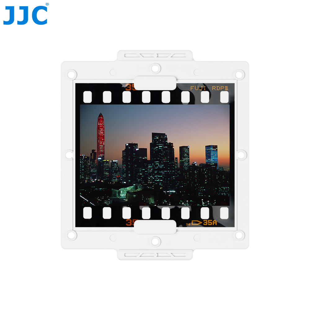 专为135胶卷底片设计;优质ABS材质,坚固耐用;外框尺寸50×50mm,兼容大多数扫描仪与投影设备;底片窗口尺寸36×24mm,匹配胶片尺寸;两片卡合结构设计,装卸便捷,无需工具;多个精准卡孔,稳固夹持,防止弯折与刮花;可搭配JJC FDA-SMH2幻灯片支架使用,用于底片翻拍