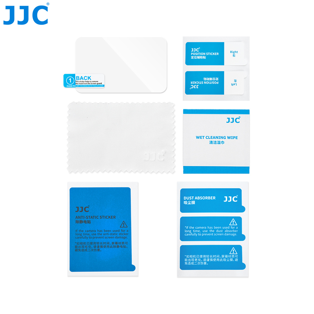 JJC GSP系列屏幕保护膜由厚度为0.3毫米的超薄光学玻璃制成,用来保护您的相机液晶显示屏。保护膜表面硬度达到9H,有效保护您的相机显示屏免受脏污,刮花,汗水,污点和轻微撞击的伤害;表面采用多层镀膜,能有效阻挡紫外线,只允许可见光进入。且屏幕保护膜具有防水,防油,防指纹的特点。2.5D安全弧边设计,避免在安装过程中划伤手指。保护膜采用静电吸附法,安装简单且不易产生气泡,取下方便且不留残渣。