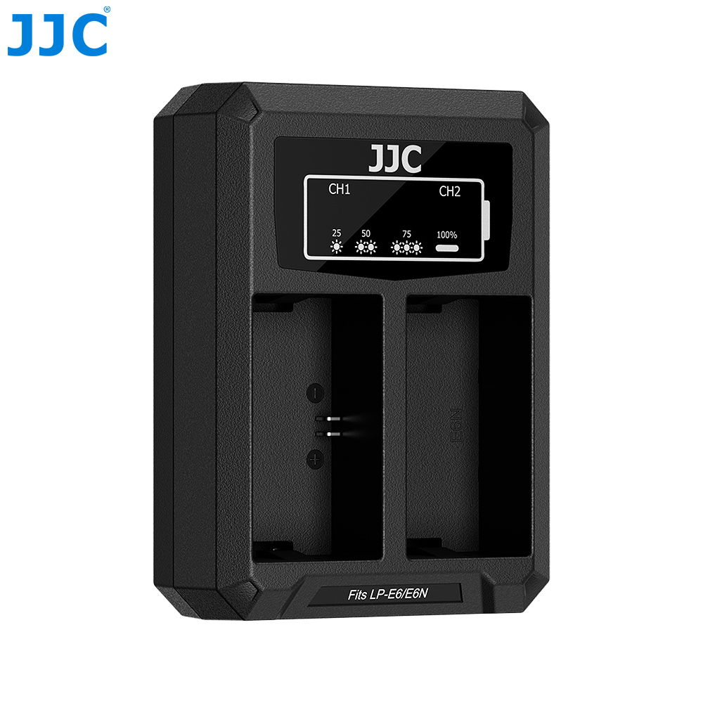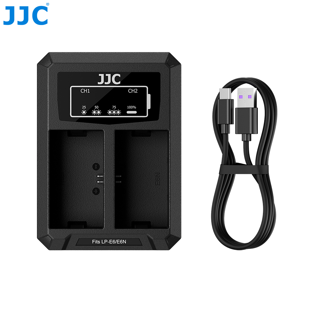 JJC DCH TC系列USB双电池充电器可同时为两个电池充电,配备通用型 Type-C (USB-C)接口,兼容性强,支持多种电源设备。您可以使用AC插头,笔记本电脑,充电宝或是汽车充电器进行充电,随时随地补充电量。充电器设有两个指示灯分别显示对应插槽电池的充电状态,充电闪烁,充电完成后长亮。过充保护设计,可在电池充满后自动停止充电,以免损坏电池。此外,附赠一根 Type-C-USB A 充电线,便于为充电器供电。