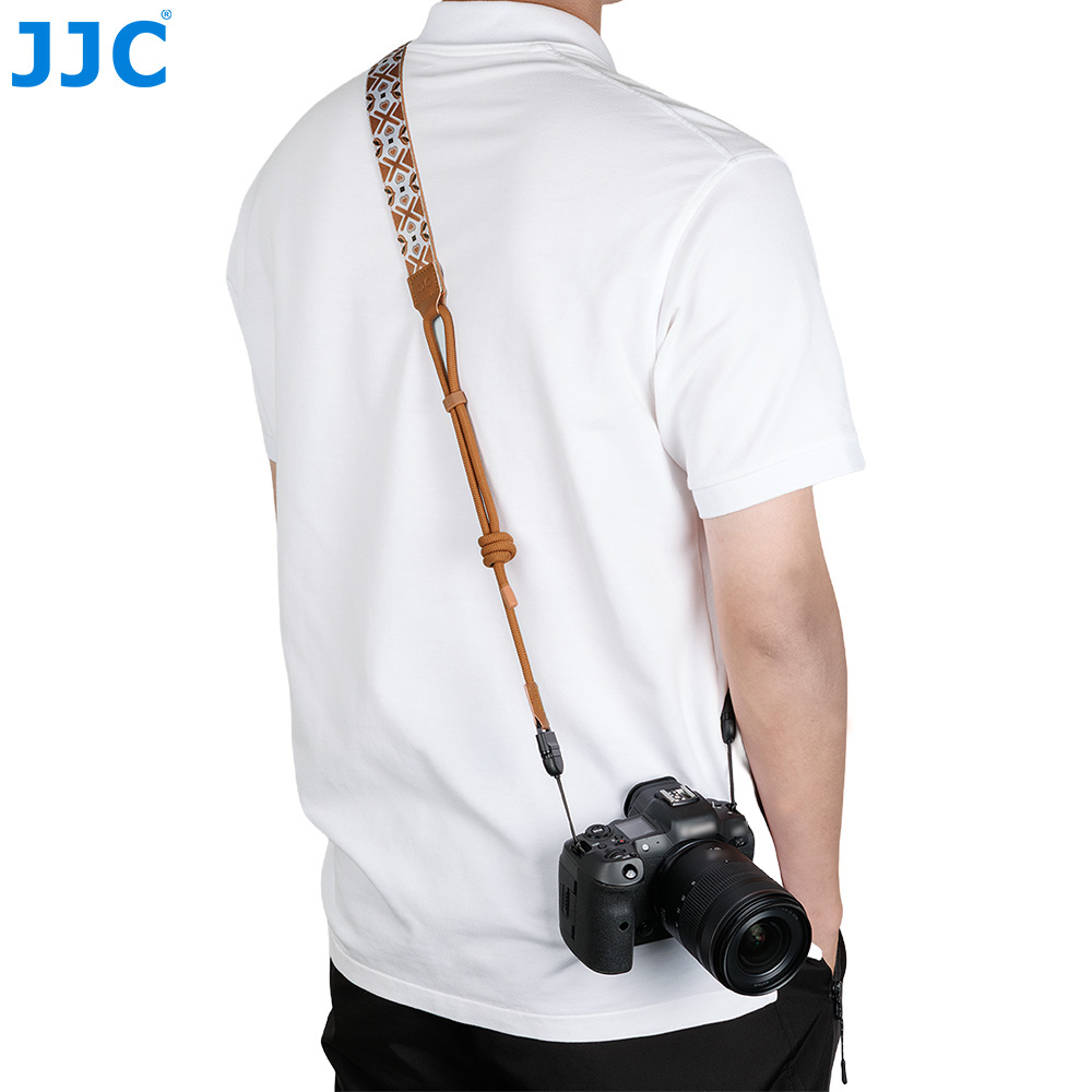 JJC FS-系列肩带适用于大部分微单和单反相机的相机,兼容性强。此款肩带专为追求时尚个性而设计,极具视觉美感,每款颜色都融入了独特元素,彰显专属风格。采用柔韧透气的四层复合材质,内层为细腻亲肤的超纤,夹层采用轻量弹性缓冲材料并覆以耐磨柔软的PU皮革,外层为高强度涤纶面料,四层紧密贴合,兼顾柔软舒适与持久支撑。肩带内侧六边形凸起设计,增强透气和防滑效果,有效分散压力,提升长时间佩戴舒适度。采用结构紧密的48锭编织绳,安全可靠且坚韧耐磨。绳端采用硅胶滴胶封口工艺,有效防止绳端散开,细节处兼顾耐用与美观。绳结设计,支持双侧长度调节,灵活适配不同身形与背负需求。快拆扣设计支持快速安装与拆卸,提升使用捷性。