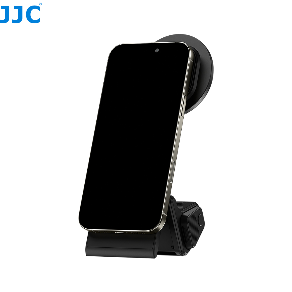 JJC MSG-P BLACK 磁吸助拍手柄与磁吸手机滤镜转接系统兼容 iPhone 16 Pro / 15 Pro / 14 Pro。产品主要由磁吸助拍手柄和磁吸滤镜转接环组成,可为手机提供相机般稳固舒适的握持体验,并支持67mm滤镜安装,让手机轻松实现专业拍摄效果。安装简便:将磁吸助拍手柄吸附在手机背面,再将滤镜转接环吸附至手柄背部磁铁,即可快速完成组装。