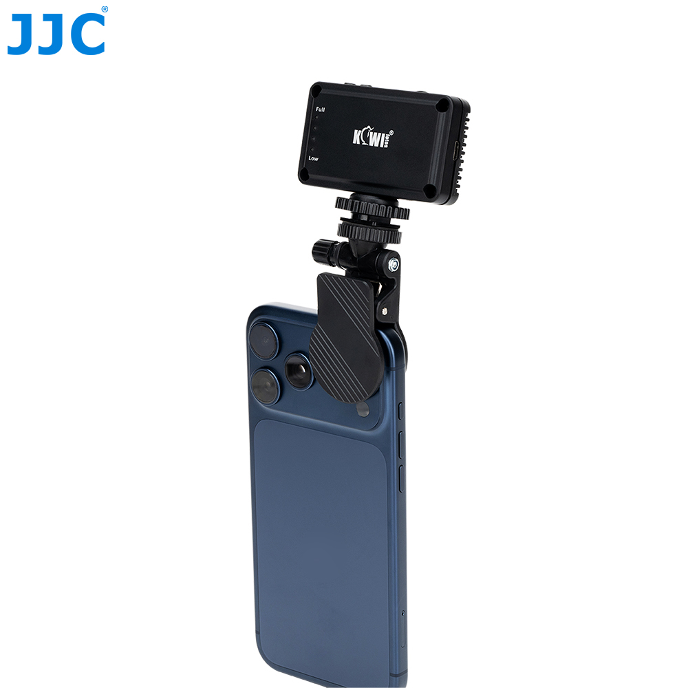 兼容JJC RL-SQ61,JJC RL-RT63,KIWIFOTOS LED-18;适用于拍照、视频会议以及直播补光等场景;将底部带1/4"-20螺孔的补光灯牢固安装在多种设备上;优质ABS材质,坚固耐用;硅胶贴片,保护手机;夹持范围达 25mm,适配多种设备