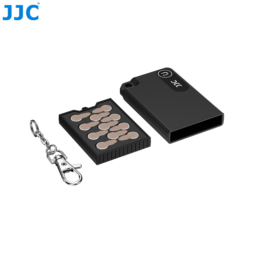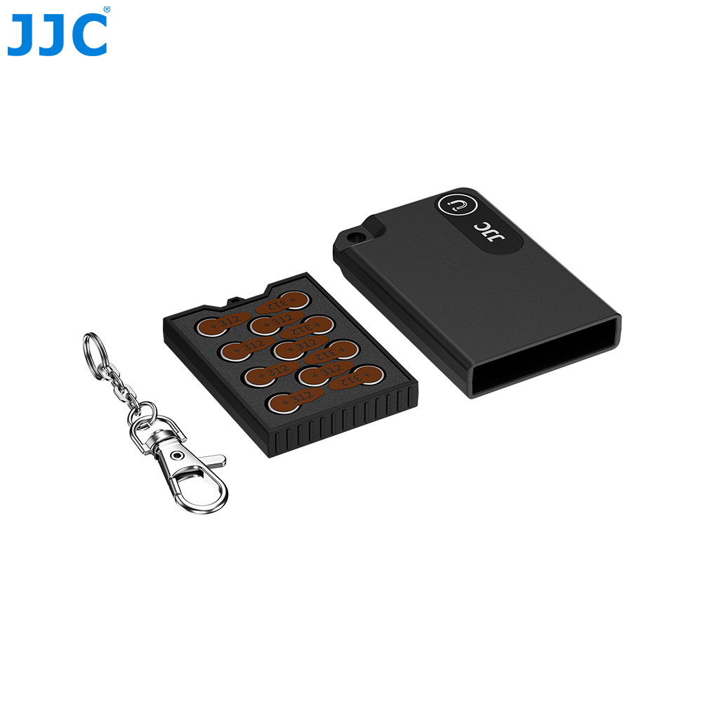 JJC BSC-B11电池收纳盒专为助听器用户设计,可收纳11颗P312 / P10 / P13 纽扣电池。外壳采用优质 ABS 材质,坚固耐用。产品具备防水溅和抗摔性能,有效保护卡片安全。内部定制成型的EVA棉垫,能够有效减轻震动和撞击带来的损伤。底部嵌有磁吸面板,能够牢固吸附电池,避免其晃动或掉落。独立槽位设计,可避免电池之间相互碰撞和刮擦产生短路,实现有序安全的收纳。抽屉式结构按压弹出,取用收纳方便简捷。按压尾部中间直至听到“咔哒”声即可自动弹出,推回并再次按压即可锁定。上盖一角嵌入磁铁,可轻松吸附并取出电池。本产品小巧轻便,可放入口袋或手提包随身携带,也可通过钥匙扣挂在背包上。