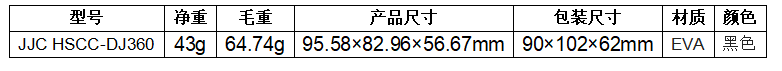 JJC HSCC-DJ360相机包专为大疆Osmo 360设计。此款相机包外部采用优质EVA材质,结实耐用,并具备防尘、防水溅功能。包身辅以加强肋设计,有效减轻震动和撞击带来的伤害。为相机镜头预留空间,有效保护相机镜头。内部采用植绒设计,可保护设备免受刮擦。底部开口设计,可安装磁吸快拆配件,自拍杆等配件。产品附赠登山扣,轻松固定在背包或腰带上,携带更方便。