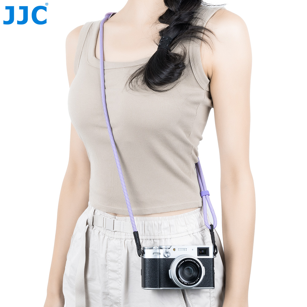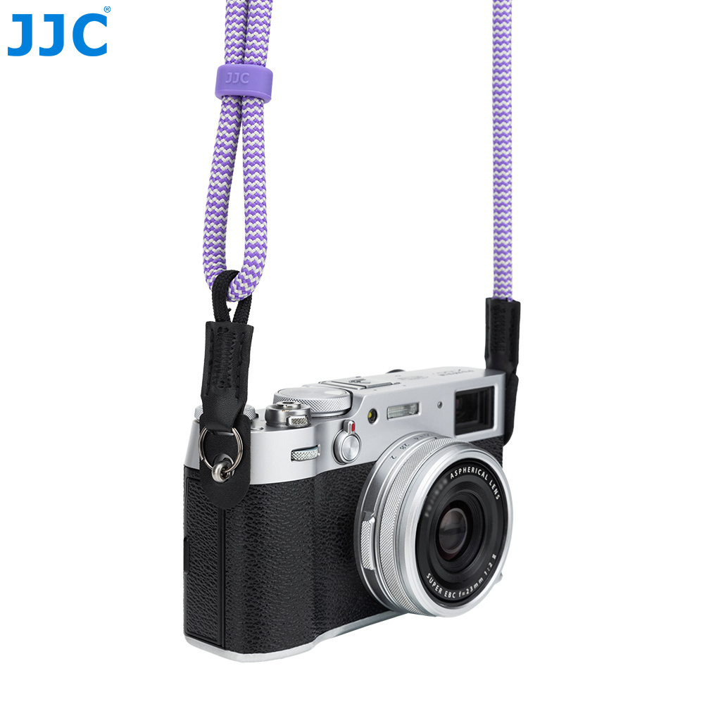 JJC CPC系列肩带专为徕卡、富士等带有凸起小圆形肩带孔的复古风格卡片机设计。采用结构紧密的48锭高密度编织绳,坚韧耐磨,佩戴安全可靠。垫肩部分使用柔软舒适的超纤皮材质,长时间佩戴也不易疲劳。绳端采用硅胶滴胶封口工艺,有效防止散开。肩带两端配有防刮皮块,可防止金属环刮花相机机身。绳结设计,支持长度调节,灵活适配不同身形与背负方式。