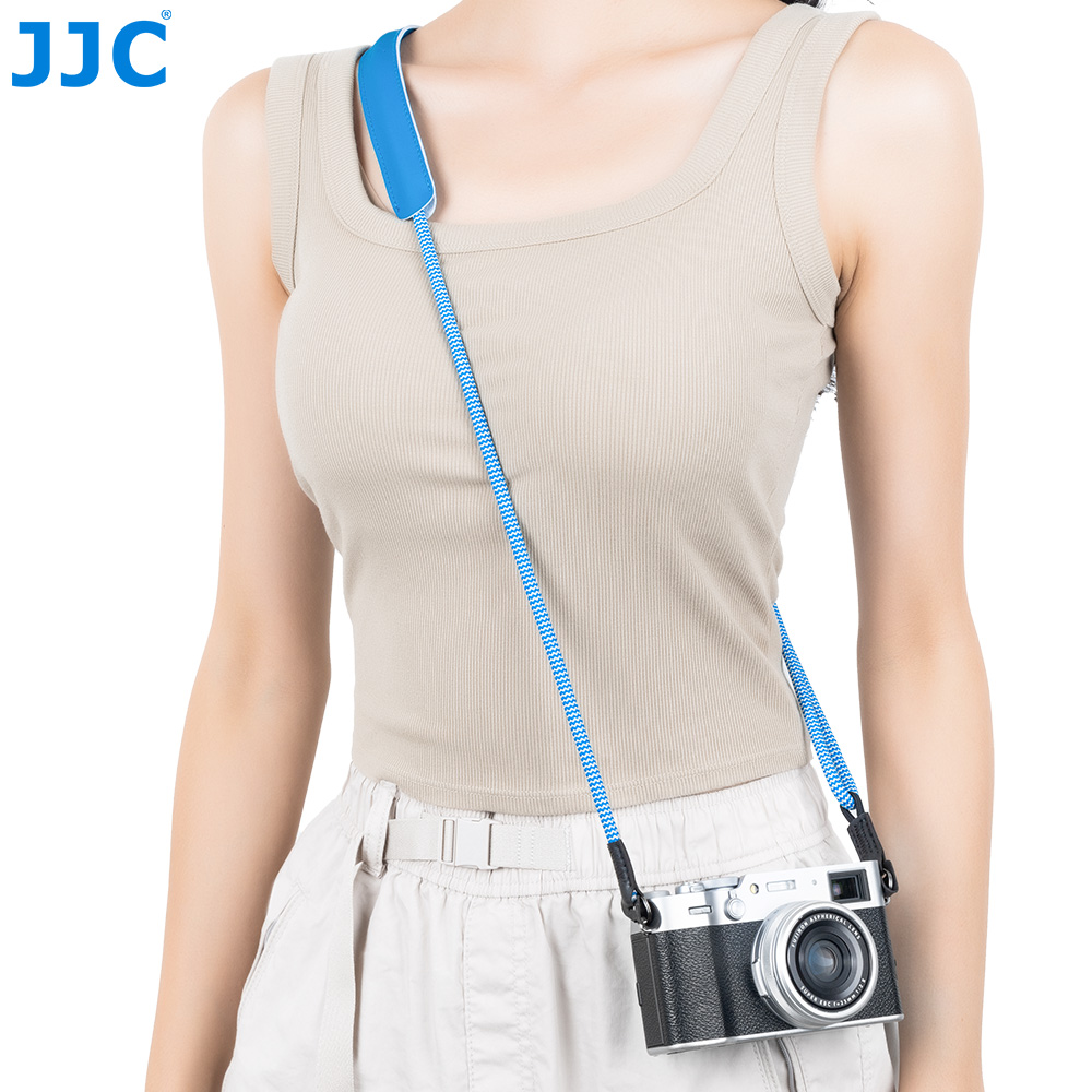 JJC CPC系列肩带专为徕卡、富士等带有凸起小圆形肩带孔的复古风格卡片机设计。采用结构紧密的48锭高密度编织绳,坚韧耐磨,佩戴安全可靠。垫肩部分使用柔软舒适的超纤皮材质,长时间佩戴也不易疲劳。绳端采用硅胶滴胶封口工艺,有效防止散开。肩带两端配有防刮皮块,可防止金属环刮花相机机身。绳结设计,支持长度调节,灵活适配不同身形与背负方式。