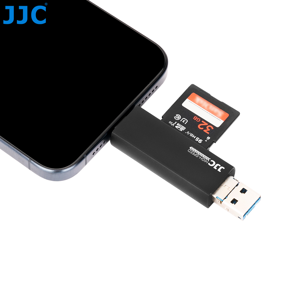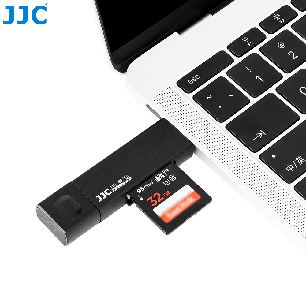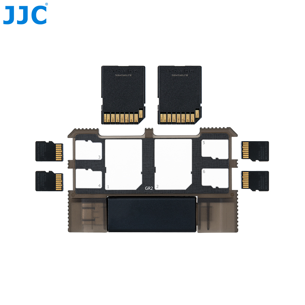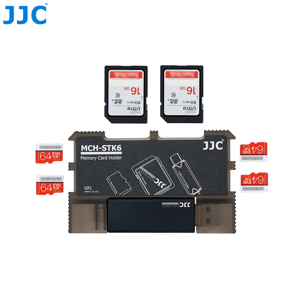 JJC MCH-STK6GR储存卡收纳盒由优质ABS材料制成,坚固耐用。可收纳2张SD卡,4张MSD卡及1个USB 3.0读卡器。可将零散的储存卡整齐收纳,有效保护储存卡免于灰尘及丢失。收纳盒卡槽内带弹性扣位,可固定住卡片使其免于掉落。背面带储存卡图案,便于使用及标记。使用时可根据贴纸上的储存卡图案轻松将卡准确无误地插入,方便快捷,免于重复拔插。还可在图案上对对应的卡片进行标注,方便管理卡片。此外,本款收纳盒附赠USB 3.0读卡器一个,带3个端口:USB 3.0, Micro USB 2.0及Type-C USB 3.0。高速数据传输,即插即用设计,可同时读取SD及MSD卡。收纳盒约银行卡尺寸大小,轻巧便携,可轻松置于口袋、手提包或背包中。本款集存卡读卡一体式设计的收纳盒将成为您卡片管理和数据存取的好帮手。