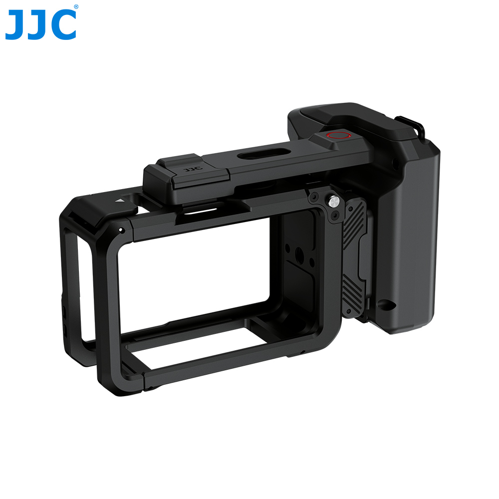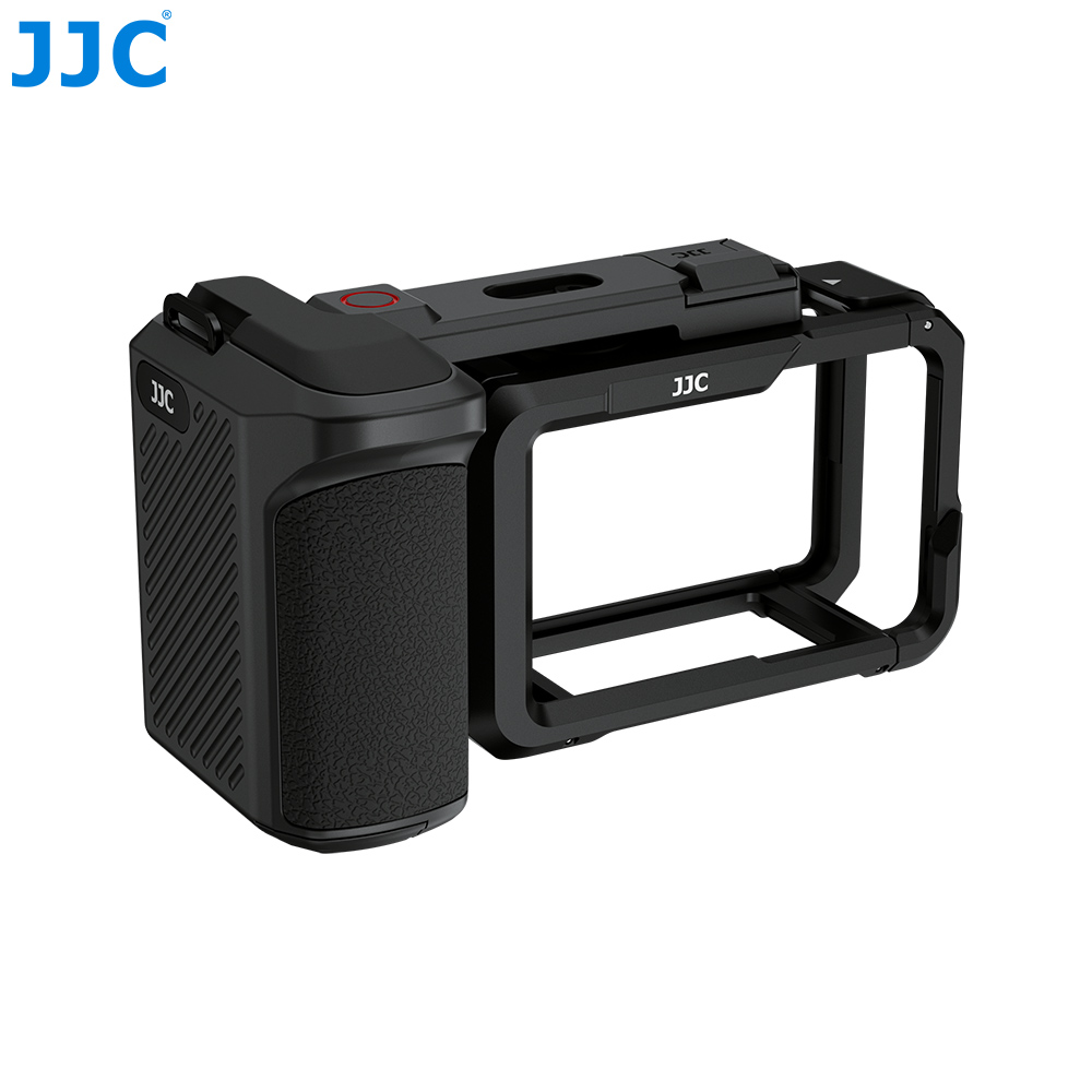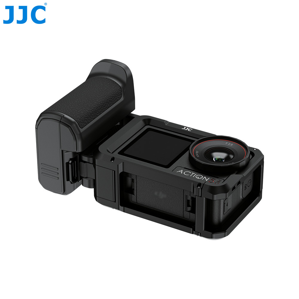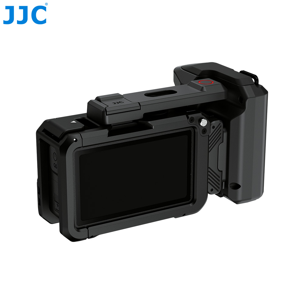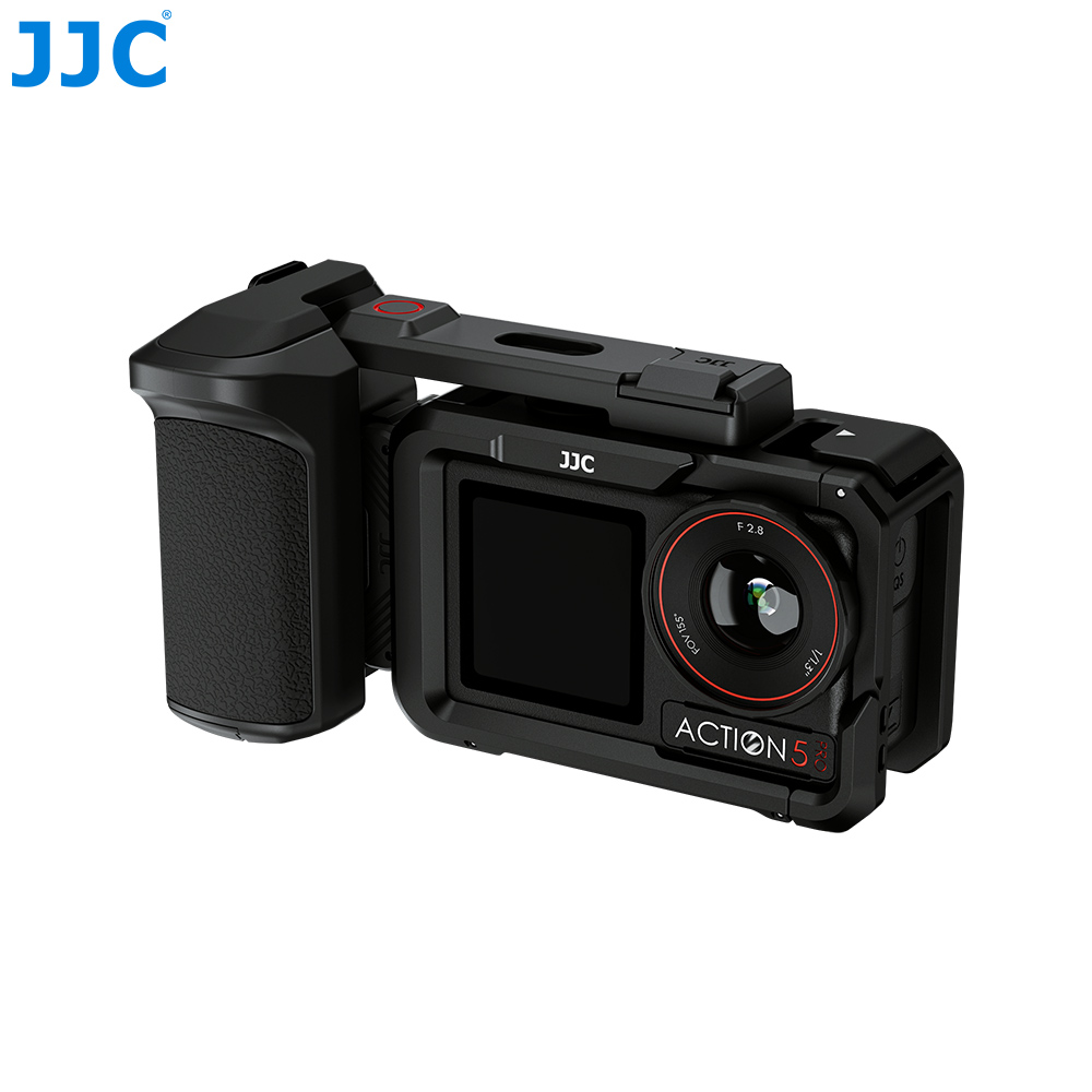 专为大疆Osmo Action 5 Pro / 4 / 3 设计,兼顾保护与操控;优质铝合金兔笼,轻巧坚固,精准贴合相机机身;多处柔软防滑硅胶垫,有效防止设备刮花;可收纳一个相机电池和一张microSD 卡;设有穿绳孔,兼容JJC手腕带(需另购);手柄采用 ABS 与硅胶组合结构,符合人体工学设计,握持更加轻盈舒适;杠杆上方设有冷靴母座,可用于连接补光灯等扩展配件;快门按钮杠杆使操作顺畅,录制更便捷;快门杠杆触点可调节,适配不同机型;不影响相机的按键、触屏与接口使用;不影响电池盖及 MicroSD 卡槽的正常使用;无需频繁拆装即可轻松完成日常操作;随附镜头盖、热靴盖、防丢绳及腕绳,便携实用