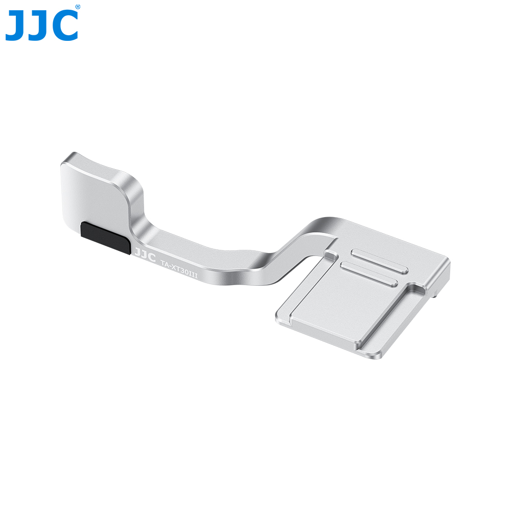 适用于富士X-T30 III, X-T30 II, X-T30, X-T20, X-T10;优质铝合金材质,坚固耐用;尾部可为拇指提供支撑,持握相机更稳固;通过相机热靴安装,方便快捷;拇指持握处硅胶贴面,提升手握质感;与热靴接触部分设有硅胶垫,保护触点;与相机接触的一侧也设有硅胶垫,避免刮花相机;黑色和银色两种颜色可供选择