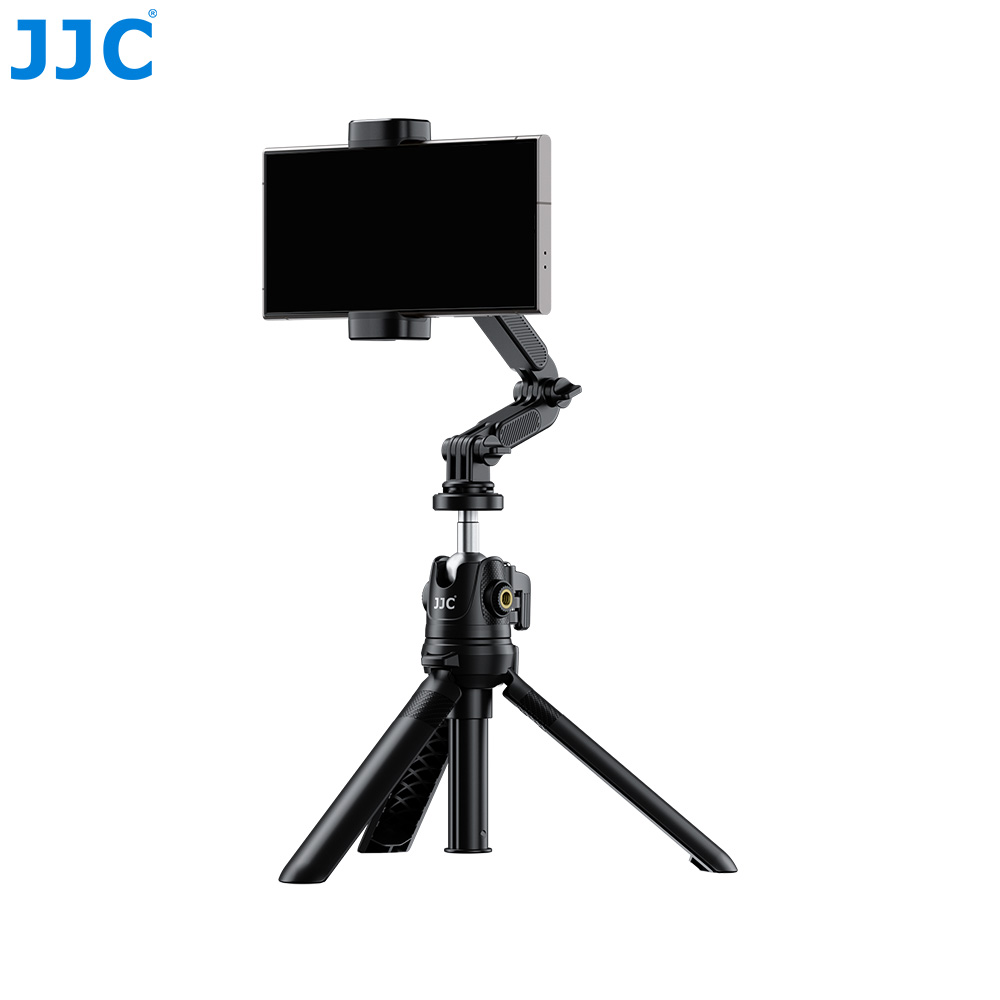 手机夹可夹持宽度为55-115mm(2.09-4.53"),厚度不超过 15mm(0.59")的手机。双弹簧锁紧结构,拉伸顺滑,使用方便。手机夹内侧配有硅胶防滑垫,可有效防止刮花手机。两侧分别设有冷靴母座与 1/4"-20 螺纹接口,方便外接麦克风、补光灯等拍摄配件,满足多样化创作需求。