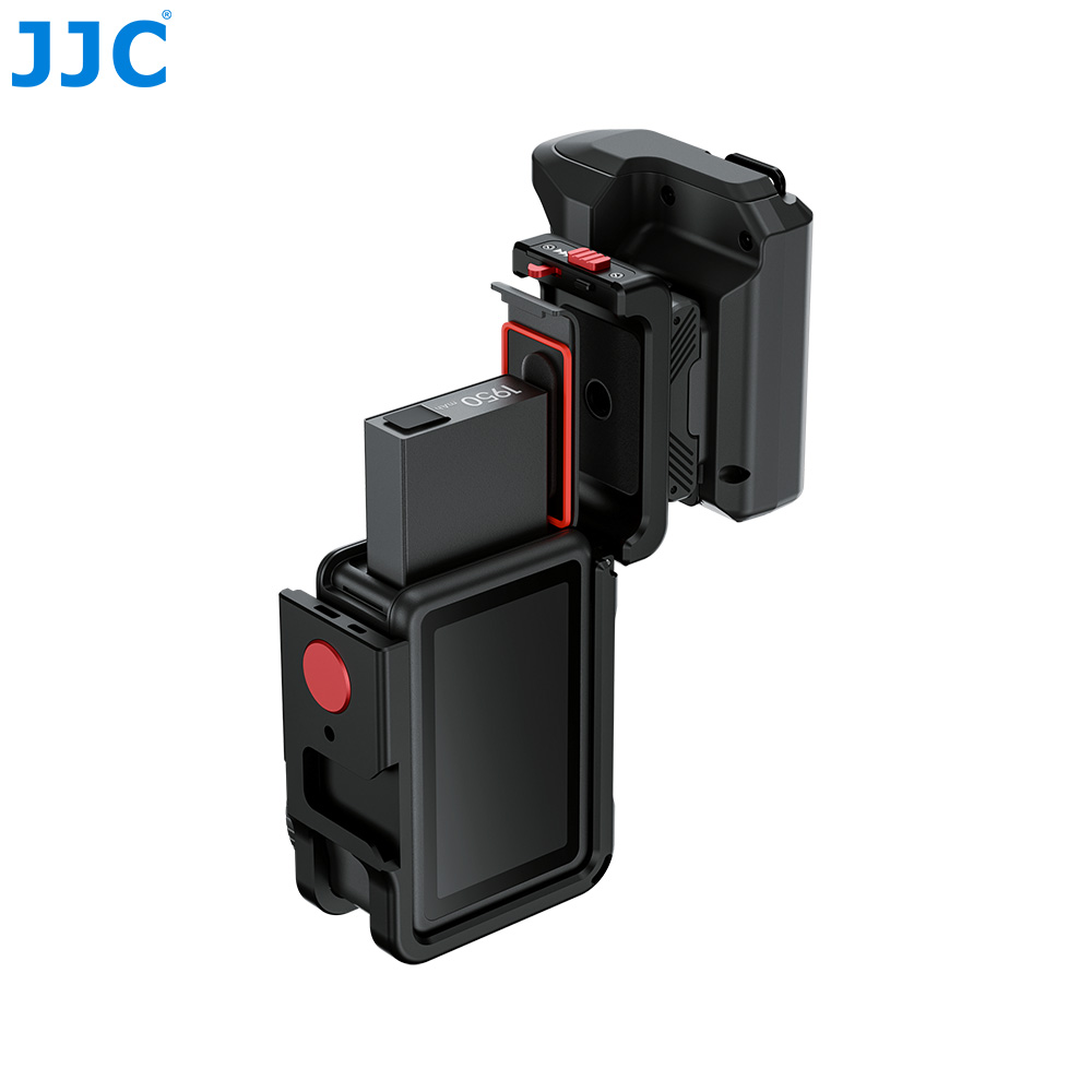 JJC SSK-OA6 街拍套装专为大疆Osmo Action 6设计,在保护相机的同时提升手持拍摄的稳定性与操作便捷性,并支持多种配件扩展,让街拍体验更加高效、安全与专业。整套产品主要由相机兔笼、快拆手柄及快门按钮杠杆组成: