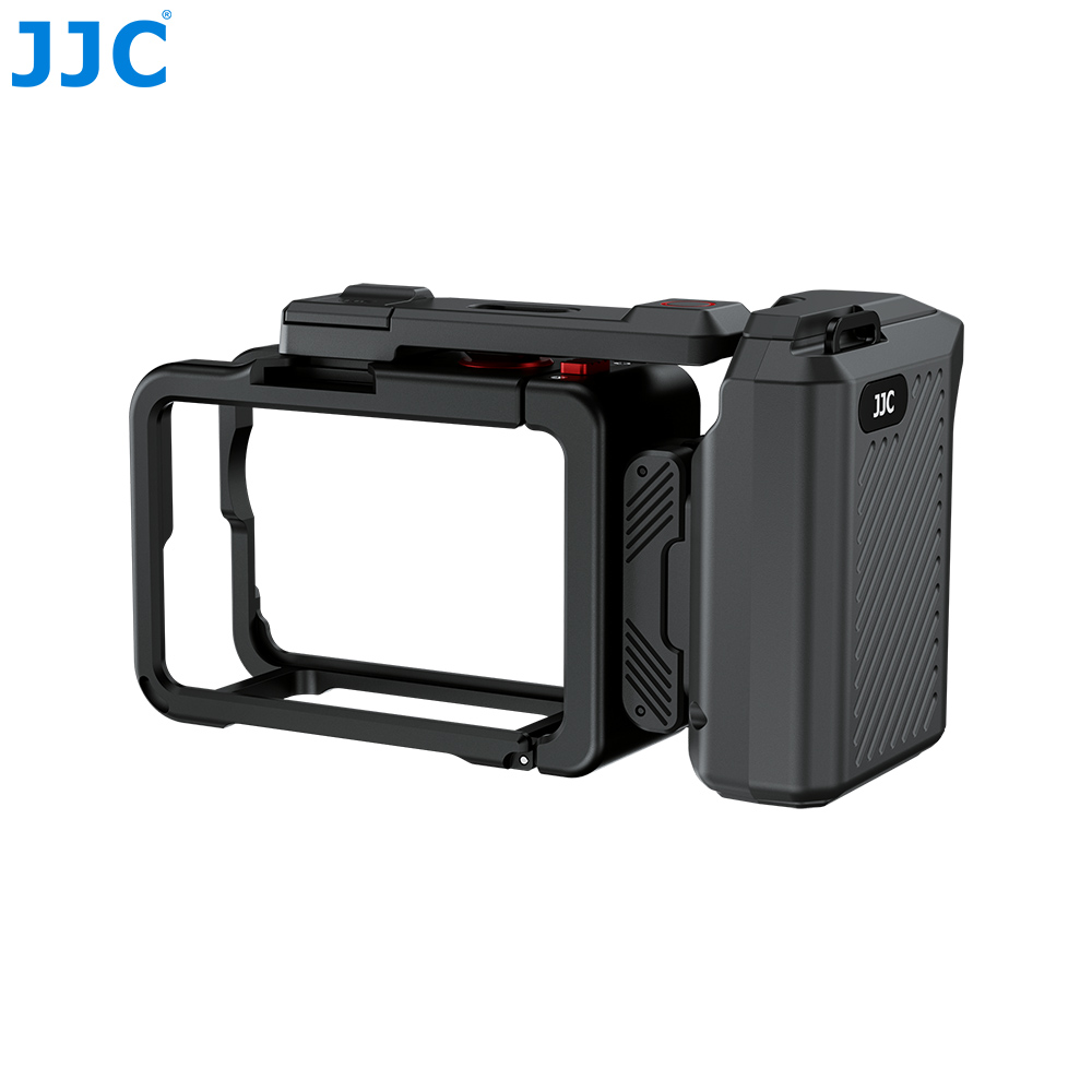 专为大疆Osmo Action 6设计,兼顾保护与操控;优质铝合金兔笼,轻巧坚固,精准贴合相机机身;关键接触部位设有防滑硅胶垫和EVA棉垫,有效防止设备刮花;可收纳一个相机电池和一张MicroSD 卡;设有穿绳孔,兼容JJC手腕带(需另购);手柄采用 ABS 与硅胶组合结构,符合人体工学设计,握持更加轻盈舒适;杠杆上方设有冷靴母座,可用于连接补光灯等扩展配件;快门按钮杠杆使操作顺畅,录制更便捷;快门杠杆触点可调节,适配不同机型;不影响相机的按键、触屏与接口使用;不影响电池盖及 MicroSD 卡槽的正常使用;无需频繁拆装即可轻松完成日常操作;随附镜头盖、热靴盖、防丢绳及腕绳,便携实用