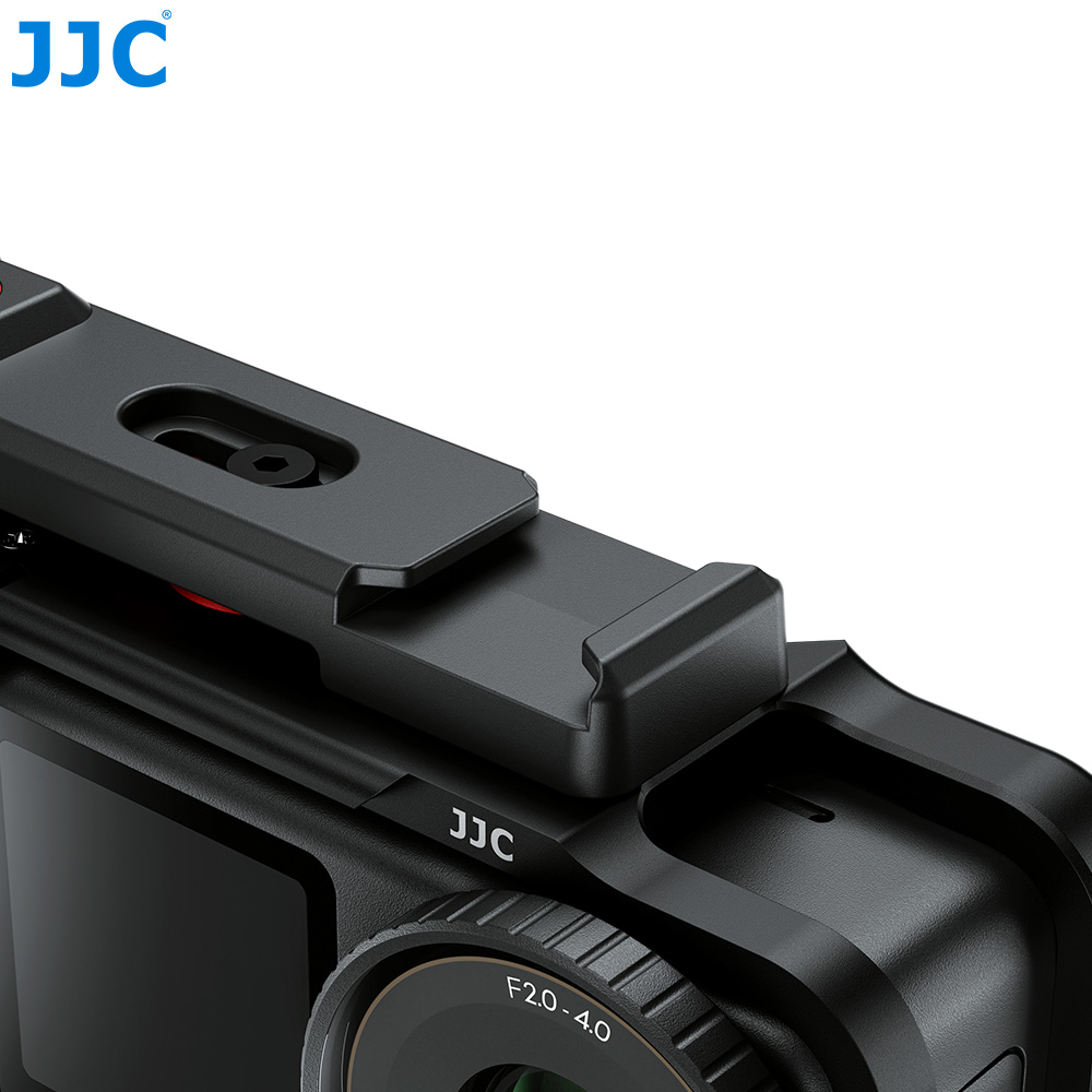 相机兔笼主体采用优质铝合金制成,轻便耐用,精准契合相机轮廓。与相机接触的关键部位硅胶垫和EVA棉垫,贴合稳固,有效防止设备刮花。手柄通过兔笼侧边的磁吸快拆母座连接,安装便捷且稳固。手柄主体采用 ABS 材质,比纯金属手柄更加轻盈;握持处防滑硅胶并结合人体工学设计,手感舒适、长时间使用也更轻松。握柄底部设有电池收纳仓,内部为柔软硅胶结构,可防止刮花电池;收纳仓盖上的 MicroSD 卡槽,内置 EVA 棉垫,安全防护更到位。手柄设有穿绳孔,可搭配JJC手腕带(需另购)使用。快门按钮杠杆通过兔笼顶部冷靴母座安装,有效拉近拍摄按键与手柄的操作距离,带来更顺手、更贴合的操控体验。中间杠杆触点可按照相机拍摄按键的位置调节,以此适配不同机型。杠杆上方另设冷靴母座,可用于连接补光灯等扩展配件,提升拍摄灵活性。产品随附镜头盖、镜头盖防丢绳、热靴盖、六角工具及两条手腕绳,方便携带与使用。整套产品结构紧凑、坚固耐用、操作简便,是街拍、旅行 Vlog 及日常创作的理想拍摄搭档。