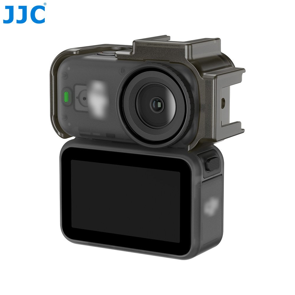 专为DJ. Osmo Nano主相机设计,精准贴合,防护可靠;顶部和侧面双冷靴接口,支持补光灯、麦克风等配件拓展;背面双拇指推位镂空设计,相机取出更省力;1/4"-20 螺孔,兼容三脚架、自拍杆、支架等配件;不影响相机按键,快拆接口,麦克风,蜂鸣器以及背面磁吸功能的正常使用;无需拆壳即可更换玻璃镜头保护盖与JJC F-NO系列滤镜;可搭配JJC LC-NANOS / LC-NANOA使用,防护效果更佳