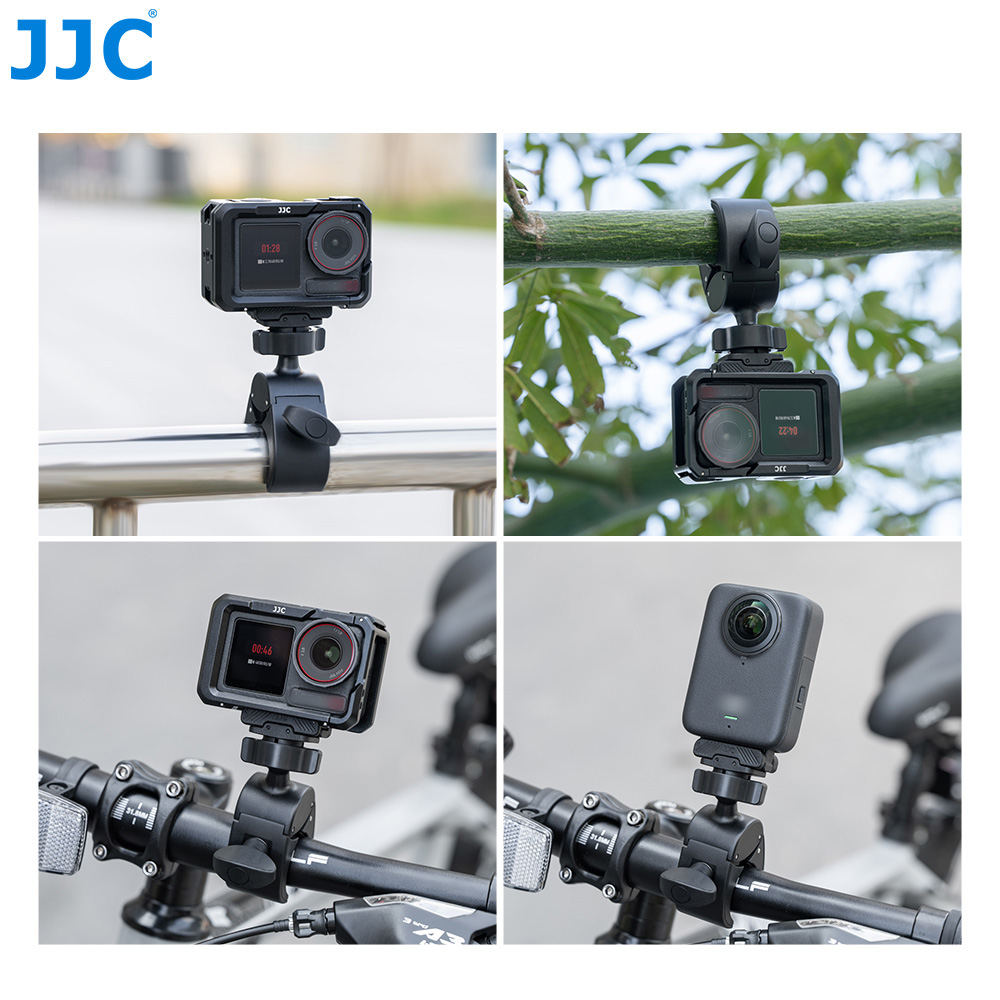 JJC HM-OA5车把夹专为大疆 Osmo 360和大疆Osmo Action 5 Pro / 4 / 3设计,可将设备快速安装在直径15-41mm的车把或设备杆上。采用大力钳结构,内侧设有防滑硅胶垫,确保夹持稳固,有效防止晃动和滑落。球头设计,支持相机360°旋转与60°倾斜调节。搭配磁吸快拆转接件,实现一秒快速装卸,方便在不同拍摄场景间快速切换。转接件主体采用优质尼龙材质,两侧快拆卡扣使用铝合金制成,在保证强度的同时兼顾轻量化。磁吸接触面贴有柔软硅胶垫,贴合紧密,并有效防止刮擦相机机身。适用于骑行、越野、旅行、滑板及日常运动记录等多种户外拍摄场景。