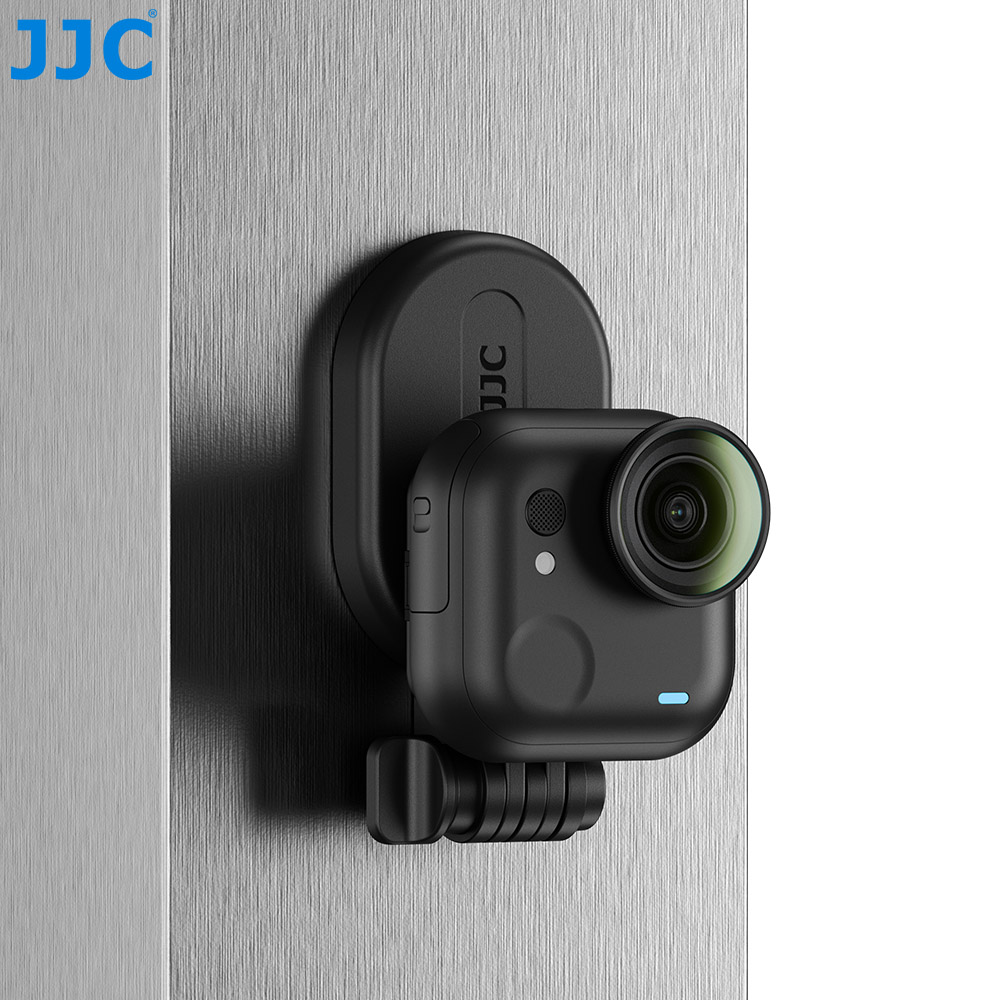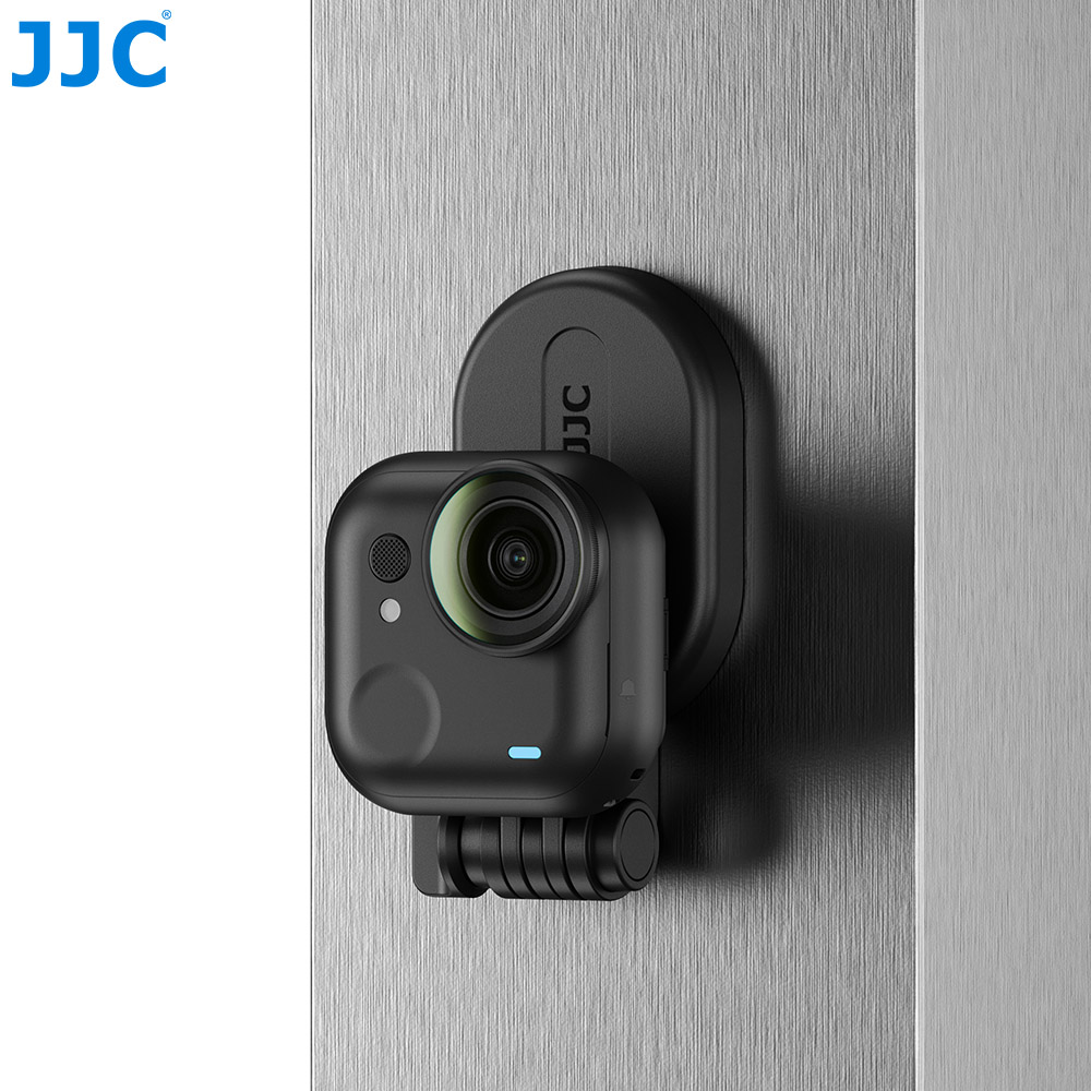 安全绳 ×1JJC MG-GU磁吸支架专为影石Insta360 GO Ultra设计,可将设备固定在各类铁质金属表面,解锁多元创意视角。支架主体由磁吸底座和磁吸运动相机转接件组成。磁吸底座内置7颗强力磁铁,最大吸附力可达1.1kg,可稳固吸附于铁架、栏杆、桌脚、冰箱门等各类金属表面,轻松应对多种拍摄场景,解锁更多创意视角。磁吸运动相机转接件覆盖柔软硅胶垫,防滑稳固的同时避免刮花相机,让您放心拍摄、尽享创作乐趣。该转接件内置 4 颗N52强磁,可牢固固定GO Ultra相机。两者连接处支持约180°角度调节,实现俯拍与仰拍的多角度拍摄。附赠一条安全绳,为您的相机提供更多安全保障。此外,磁吸底座和运动相机转接件两者可拆卸使用,解锁更多创意玩法。