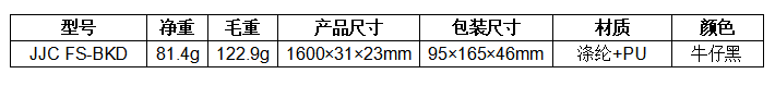 型号 图片 颜色 长度 规格 JJC FS-BKD 牛仔黑 长款:120cm-160cm 短款:106cm-120cm 肩带宽度31mm 编织绳直径:6.5mm 绳结厚度:23mm 承重:25kg