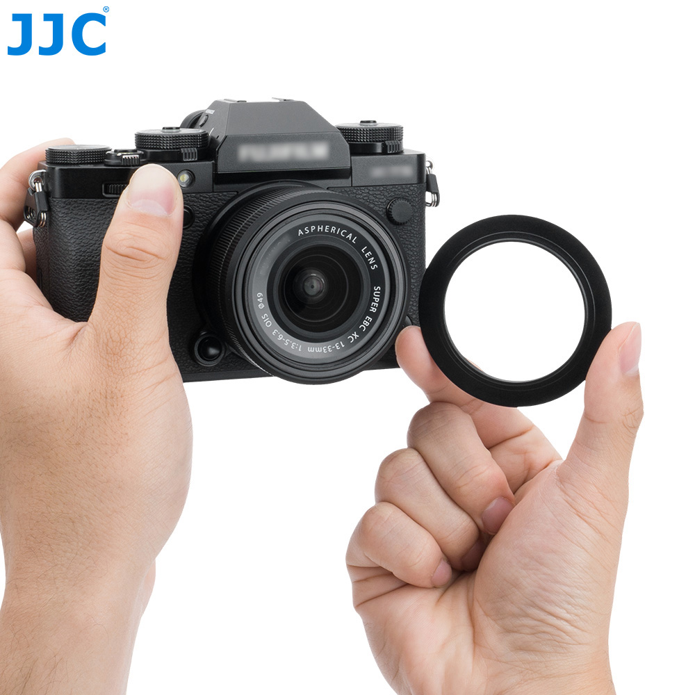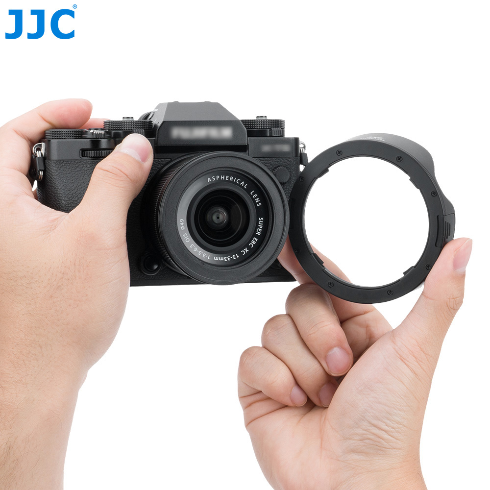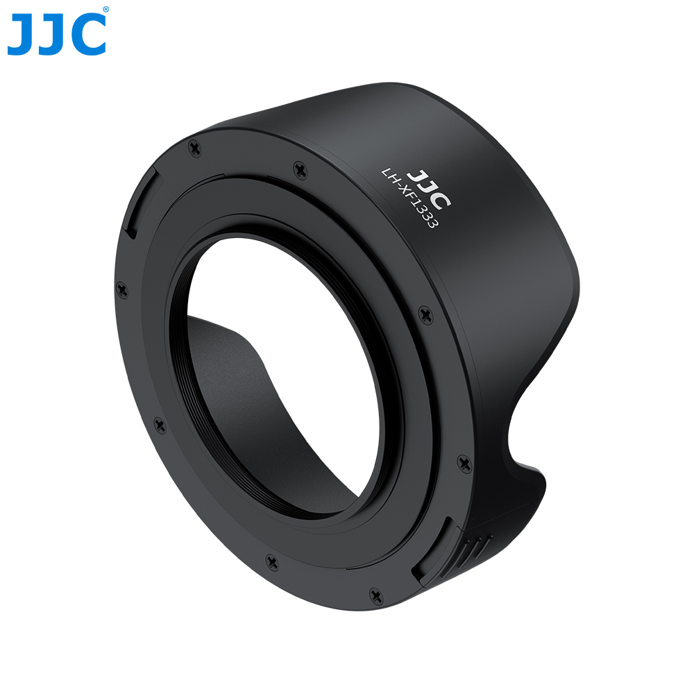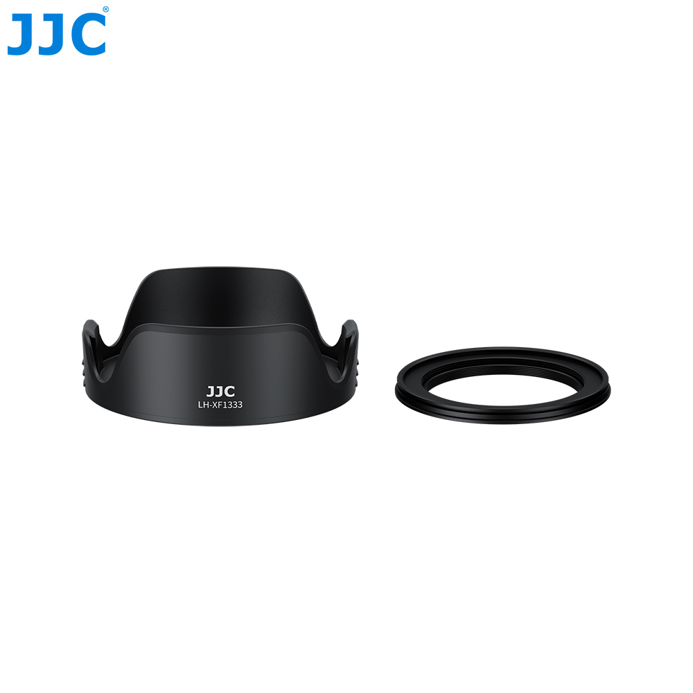 JJC LH-XF1333镜头遮光罩适用于富士XC 13-33mm F3.5-6.3 OIS镜头,包含一个转接环与一个遮光罩。转接环采用优质铝合金材质,轻便耐用;遮光罩则使用ABS 材质,结构坚固,适用于多种使用环境。遮光罩内壁采用哑面消光设计,有效减少或避免镜头光斑。通过延伸镜头前端,有效阻挡多余杂散光线进入镜头,同时增强对镜头的物理保护,减少意外撞击风险。遮光罩支持反扣安装,便于收纳和携带。安装后,不影响φ49mm的滤镜及原装镜头盖的使用。