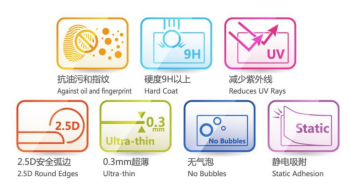 表面采用多层镀膜,能有效阻挡紫外线,只允许可见光进入。且屏幕保护膜具有防水,防油,防指纹的特点。