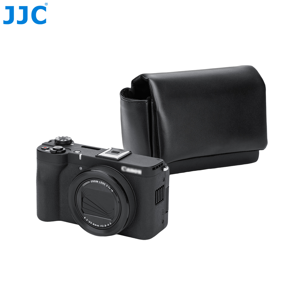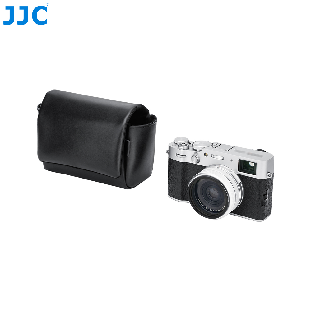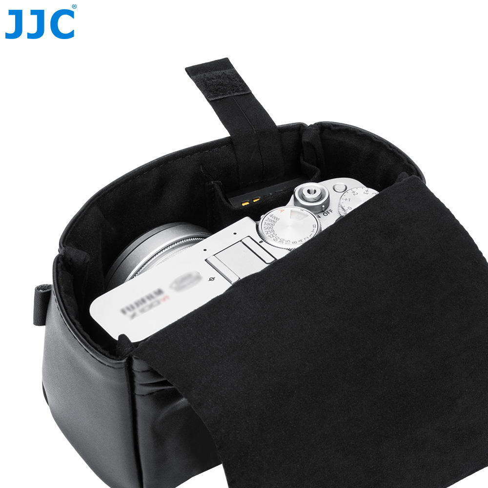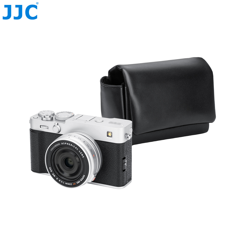 JJC CL-M系列相机包适用于富士X100VI, X100V,富士X-E5(搭配富士XF 23mm F2.8 R WR,XF 27mm F2.8 R WR以及XF 27mm F2.8镜头),佳能PowerShot V1等相机,可以储存并保护您的相机免于灰尘,颠簸、刮蹭以及轻微的撞击。磁吸式开合设计,取用相机更高效。相机包表面选用优质超纤皮革,质地细腻且坚韧耐磨,不仅提升整体质感,也更适合日常频繁使用;内衬采用柔软仿皮绒材质,可有效防止刮擦,保护相机机身和镜头。相机包设有电池专用收纳袋,可用于存放电池;背面配有隐藏式口袋,方便收纳存储卡,读卡器和清洁布等。此外,该相机包兼容相机肩带,安装后不影响正常背负。本系列提供黑色和蓝色两款配色,随心选择,尽显个性。