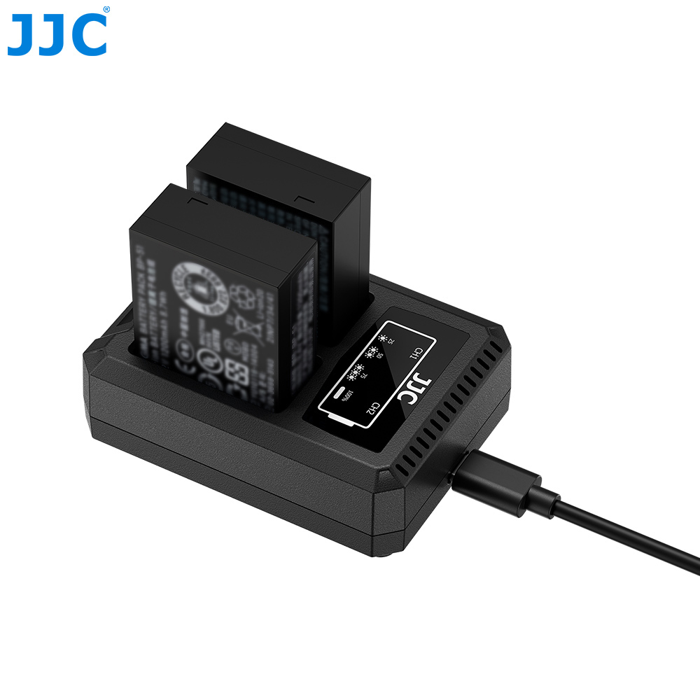 JJC DCH TC系列USB双电池充电器可同时为两个电池充电,配备通用型 Type-C (USB-C)接口,兼容性强,支持多种电源设备。您可以使用AC插头,笔记本电脑,充电宝或是汽车充电器进行充电,随时随地补充电量。充电器设有两个指示灯分别显示对应插槽电池的充电状态,充电闪烁,充电完成后长亮。过充保护设计,可在电池充满后自动停止充电,以免损坏电池。此外,附赠一根 Type-C-USB A 充电线,便于为充电器供电。